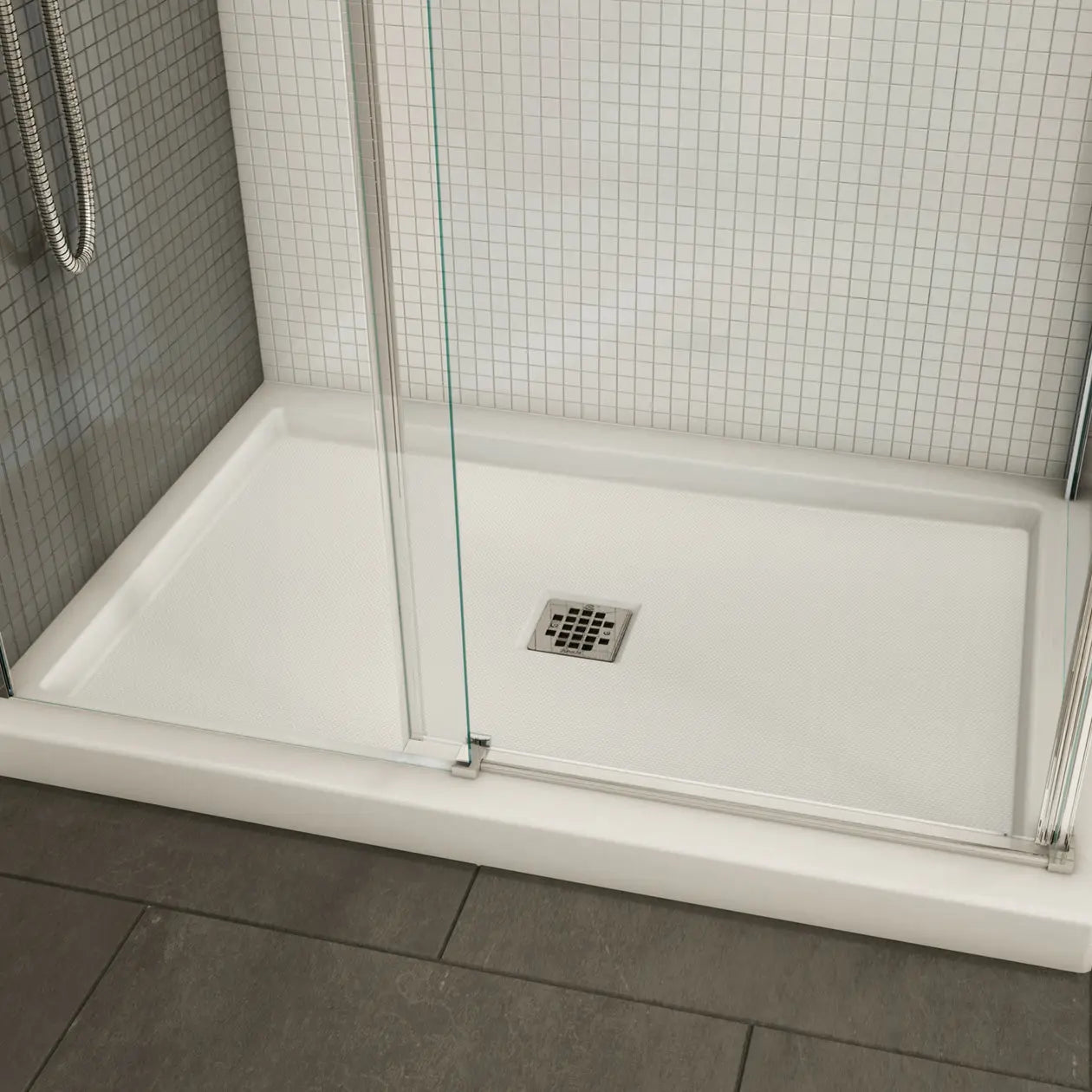Maax B3Square 4836 Acrylic Corner Left Shower Base in White with Anti-slip Bottom with Center Drain 420003-542-001-100