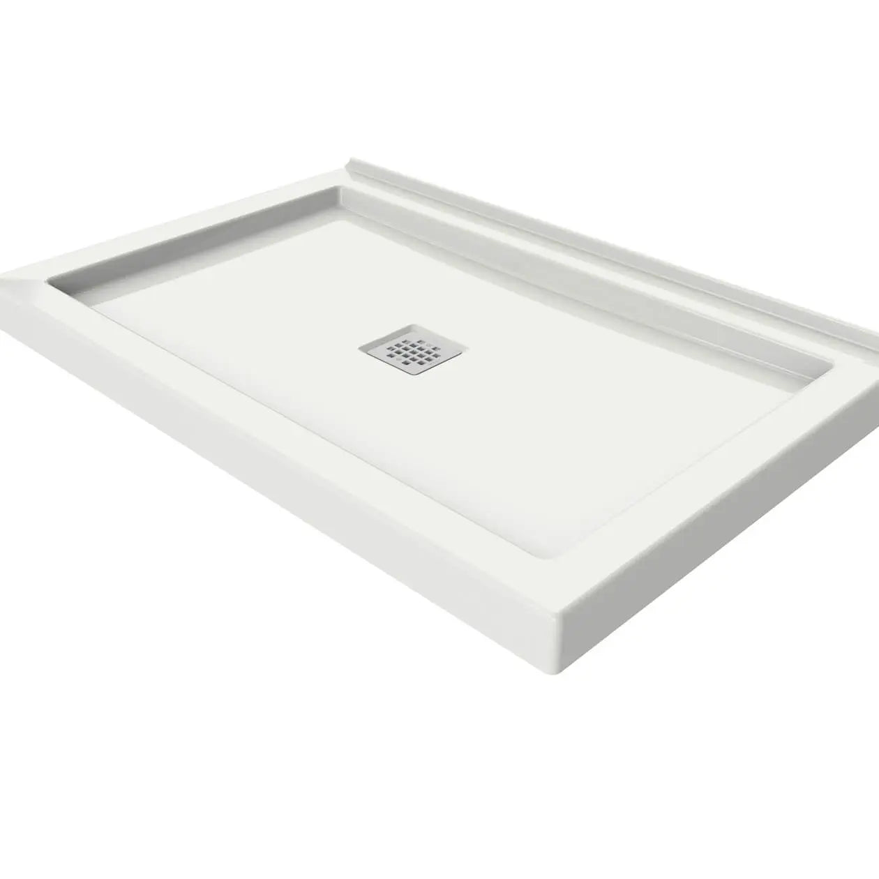 Maax B3Square 4836 Acrylic Wall Mounted Shower Base in White with Center Drain 420003-505-001-100