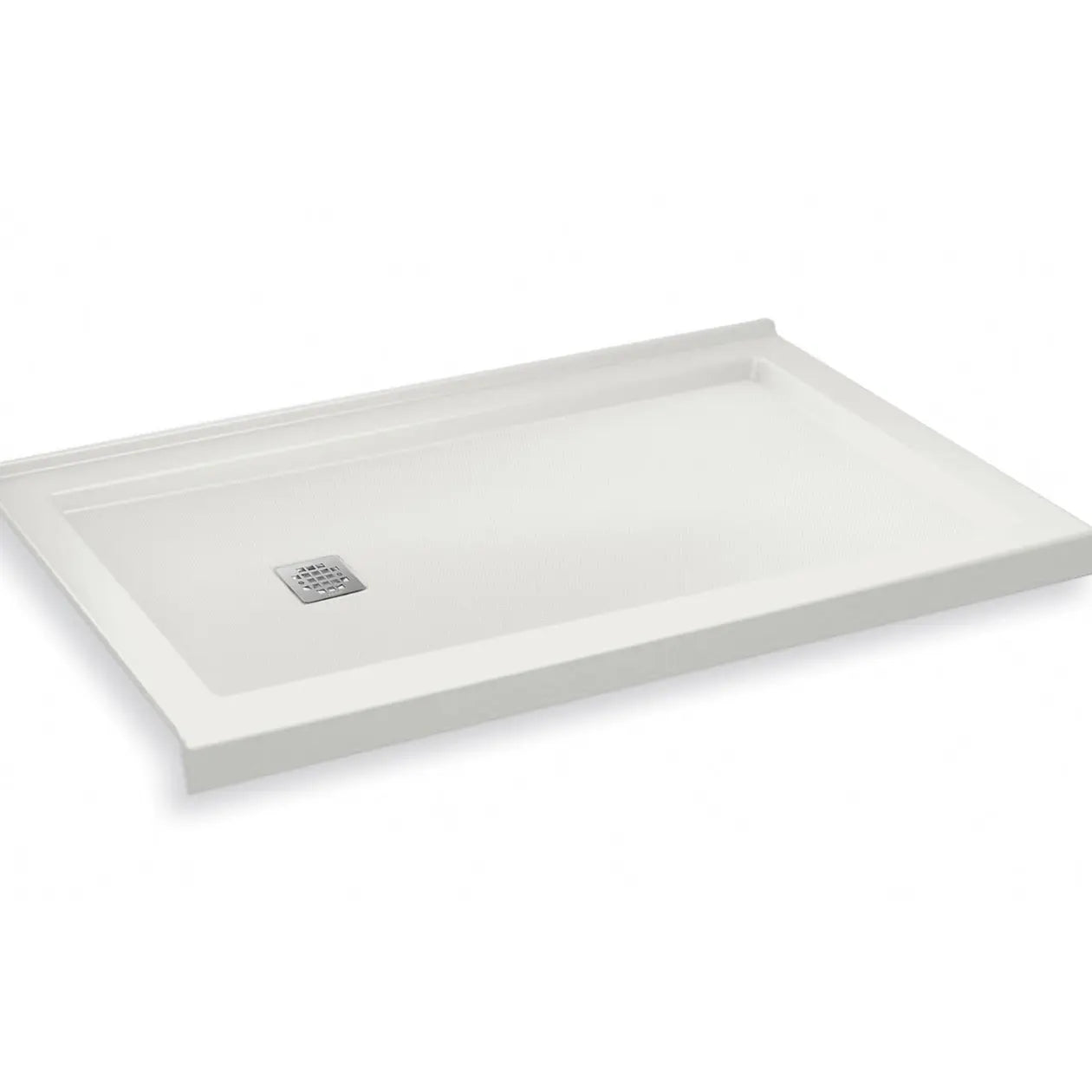 Maax B3Square 6036 Acrylic Corner Left Shower Base in White with Anti-slip Bottom with Center Drain 420006-542-001-101