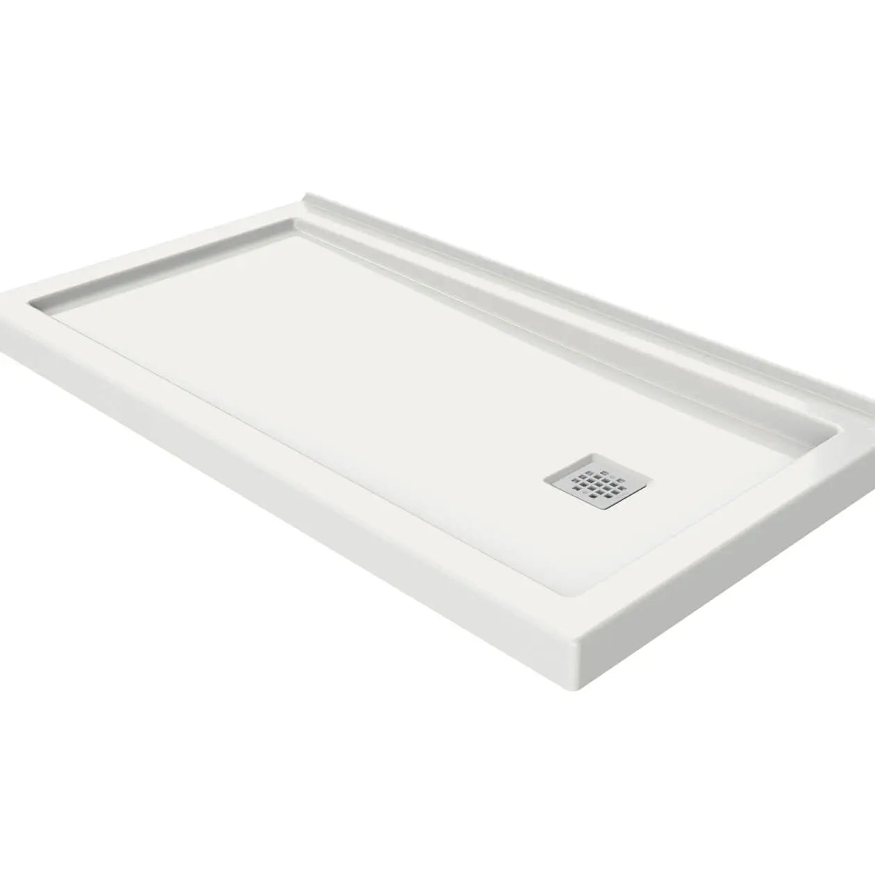 Maax B3Square 6036 Acrylic Wall Mounted Shower Base in White with Center Drain 420006-505-001-102