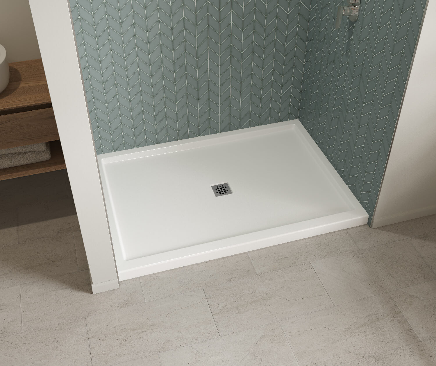 B3Square 6042 Acrylic Alcove Shower Base in White with Center Drain