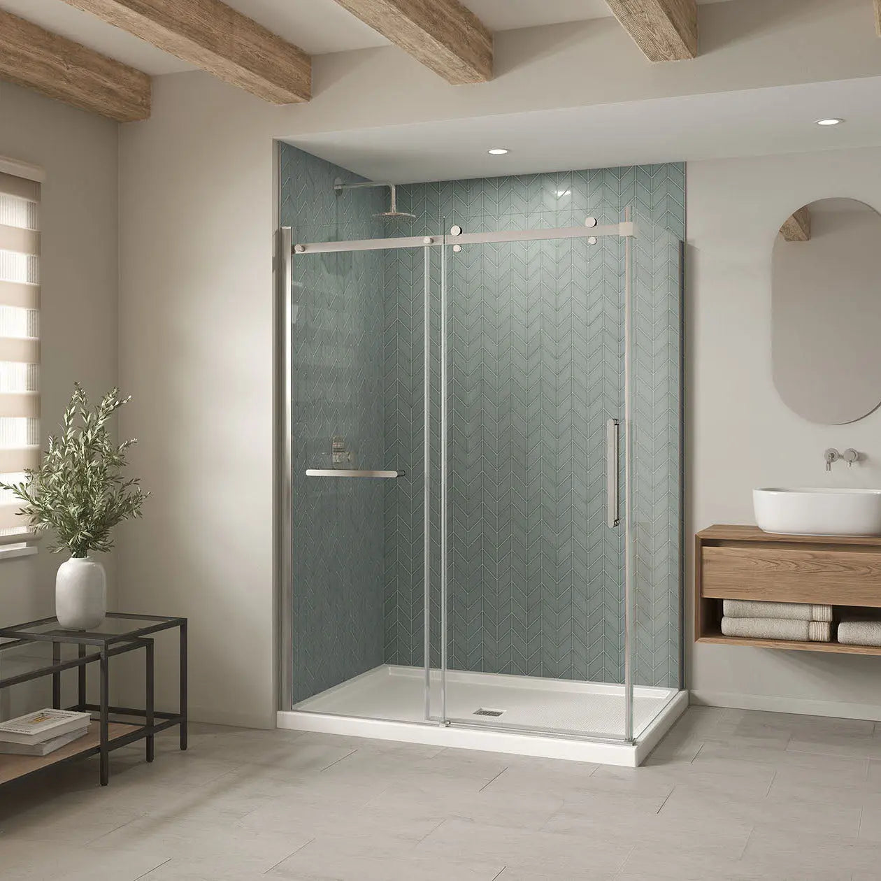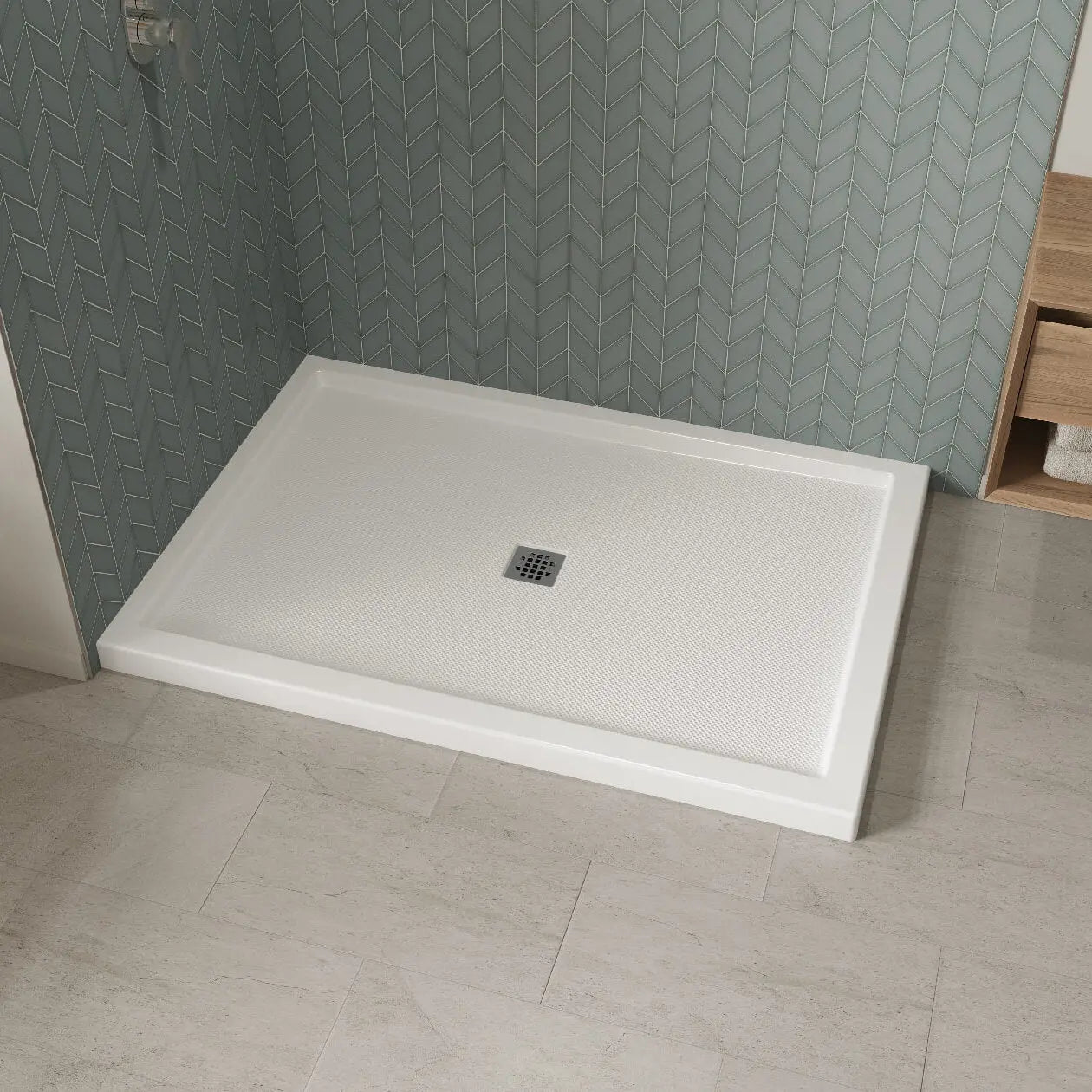 Maax B3Square 6042 Acrylic Corner Left Shower Base in White with Anti-slip Bottom with Center Drain 420036-542-001-100