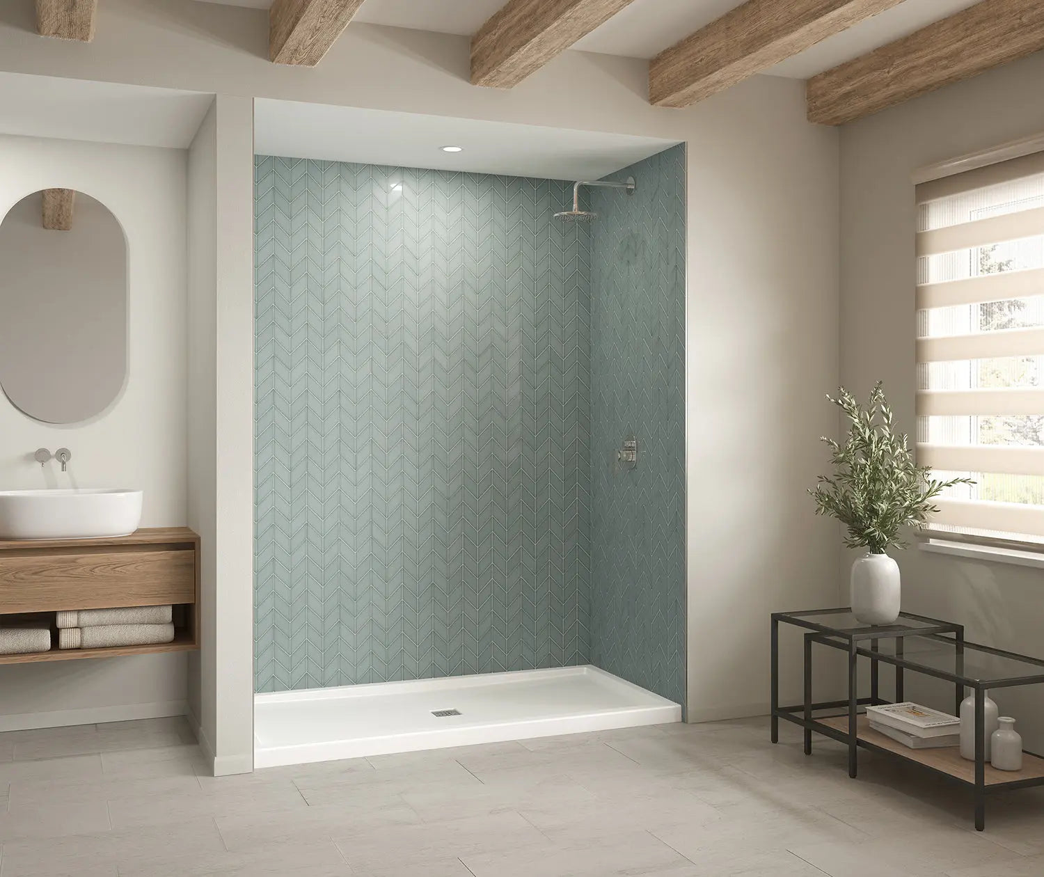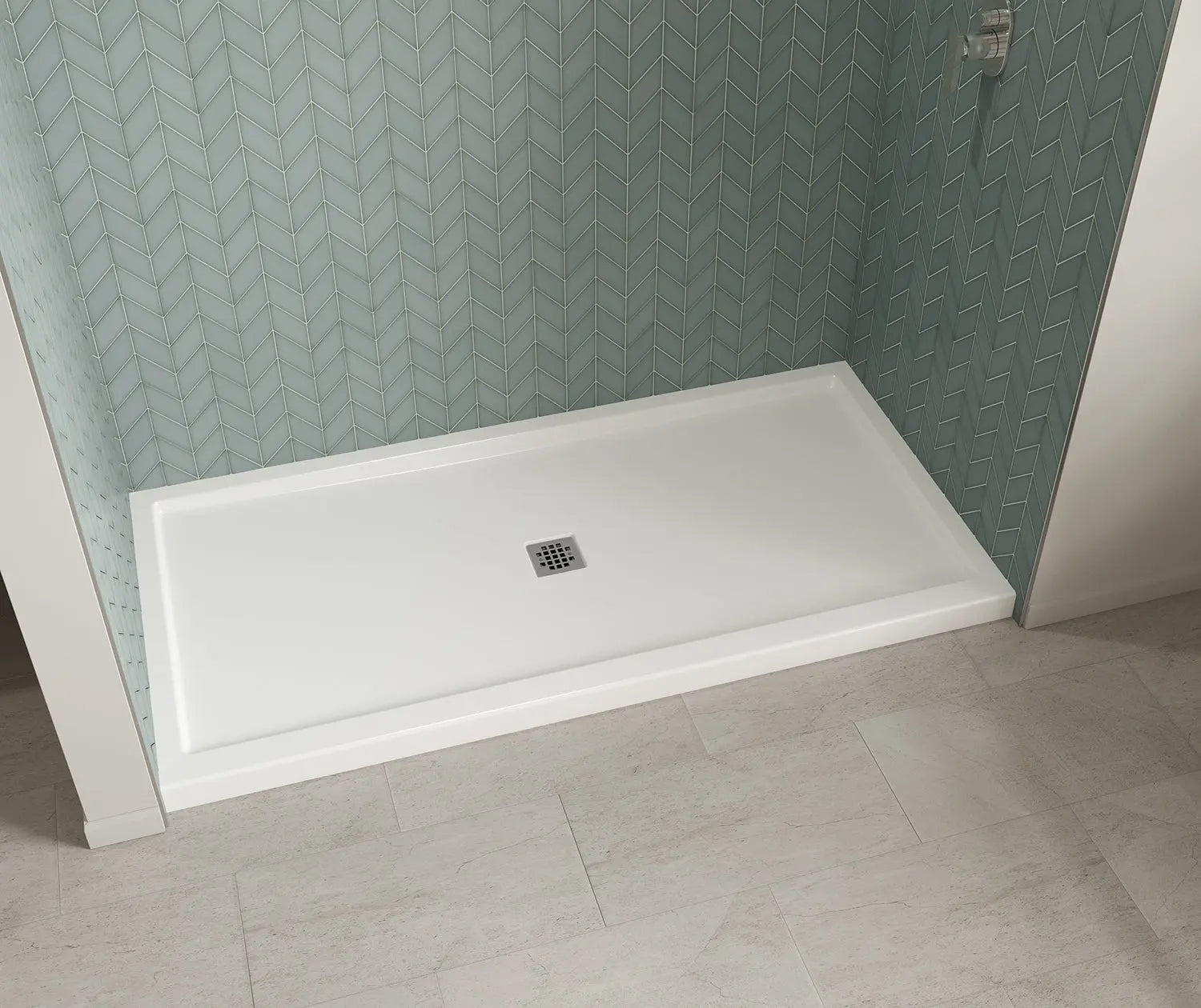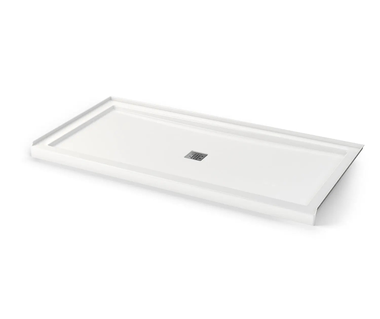 B3Square 7236 Acrylic Alcove Shower Base in White with Center Drain
