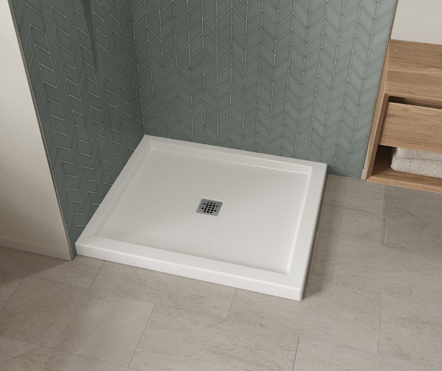 B3X 4236 Acrylic Corner Left Shower Base with Center Drain in White