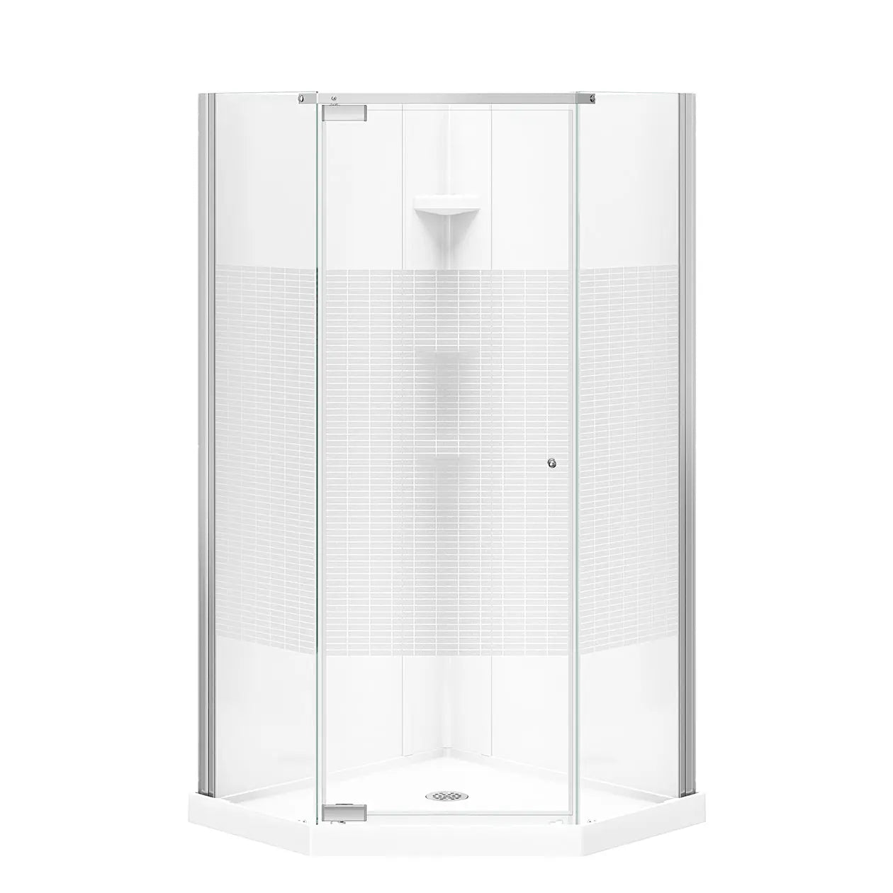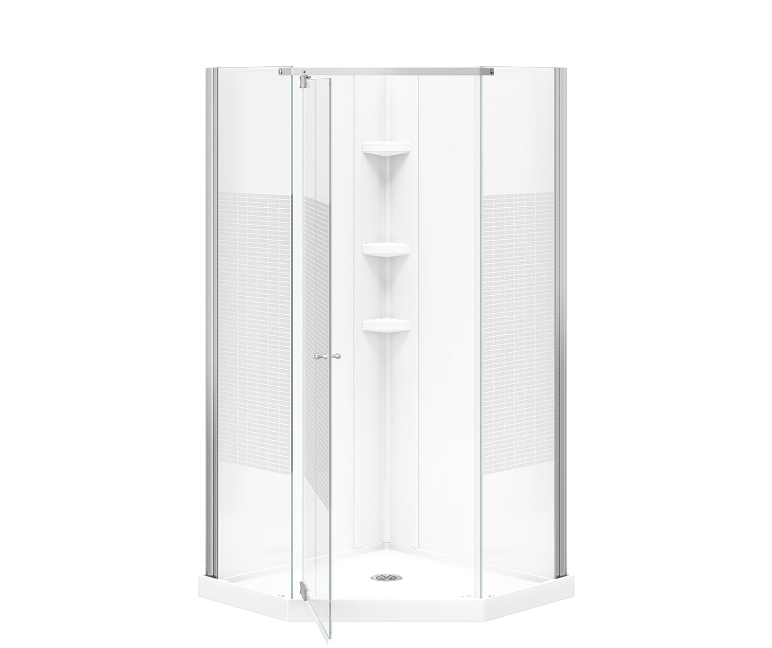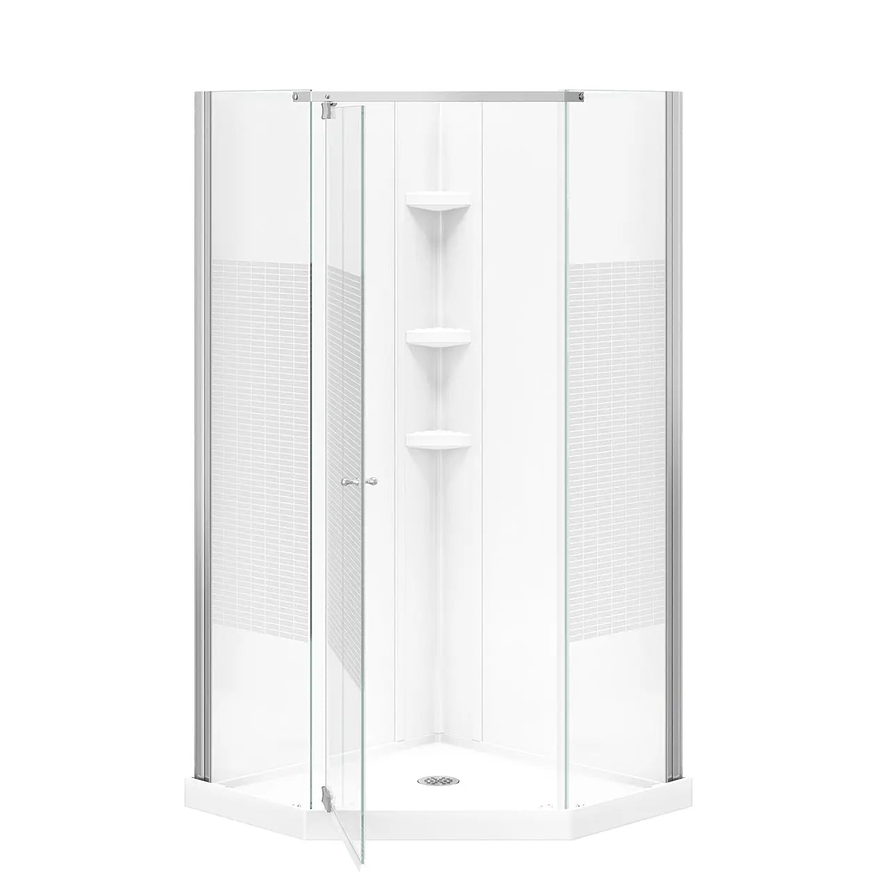 Maax Begonia Carbon 36 x 36 Polystyrene Center Drain Shower Kit in White with Carbon glass in Chrome 300012-000-129-104