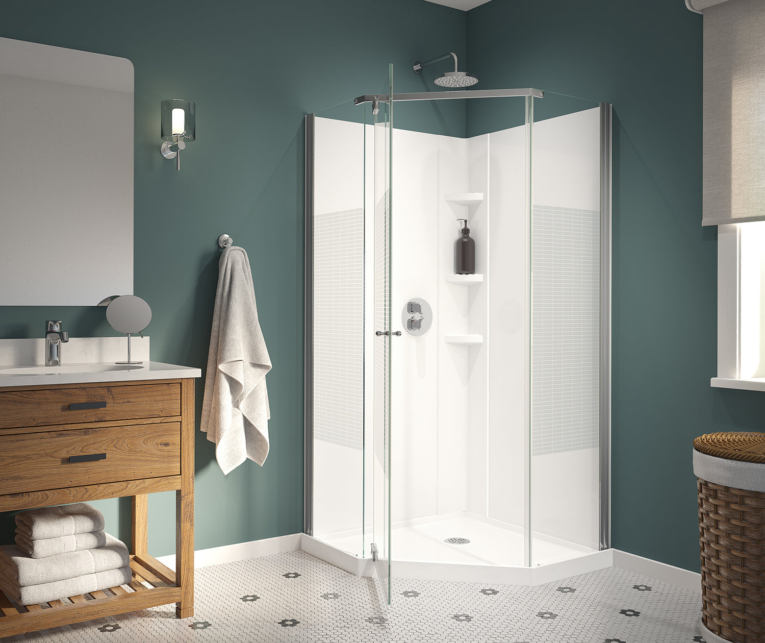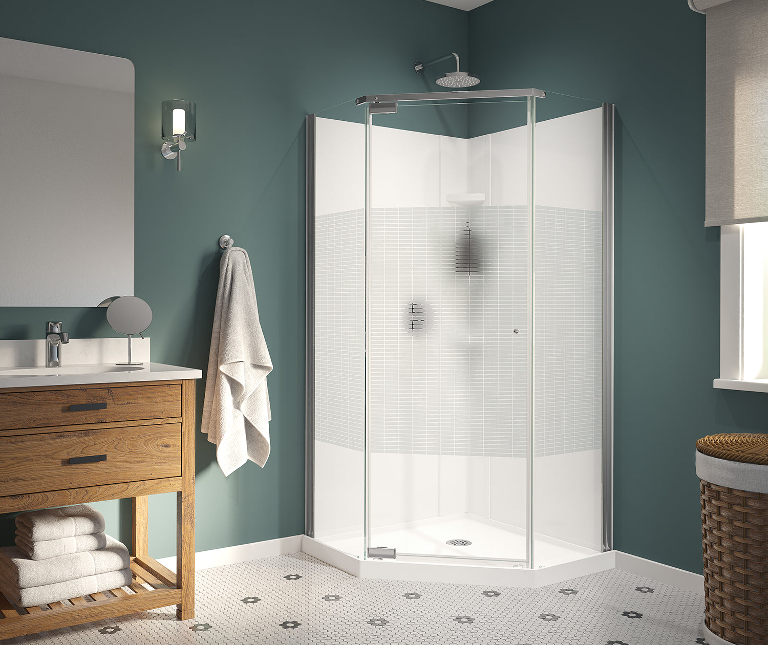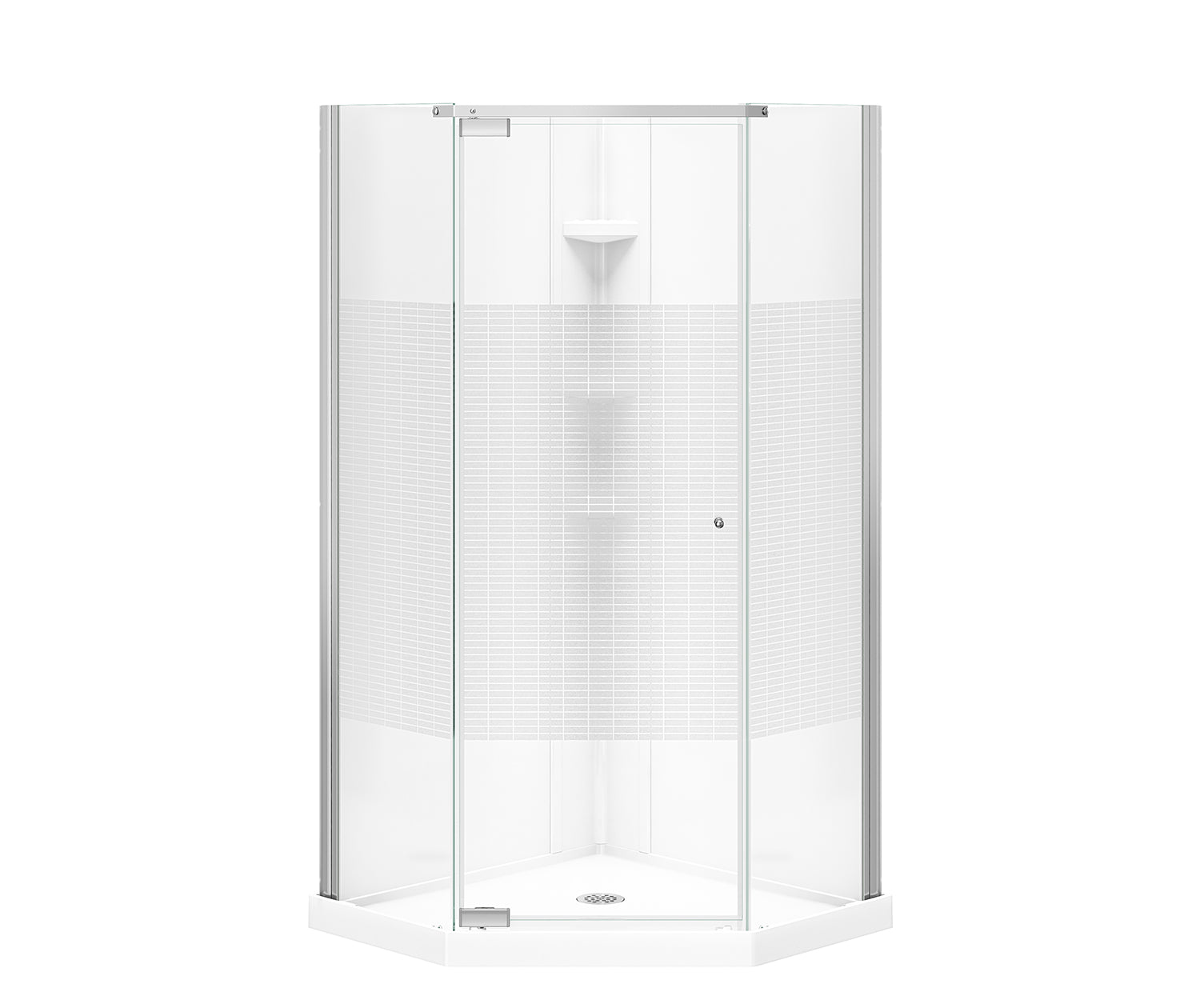 Maax Begonia Carbon 36 x 36 Polystyrene Center Drain Shower Kit in White with Carbon glass in Chrome 300012-000-129-104