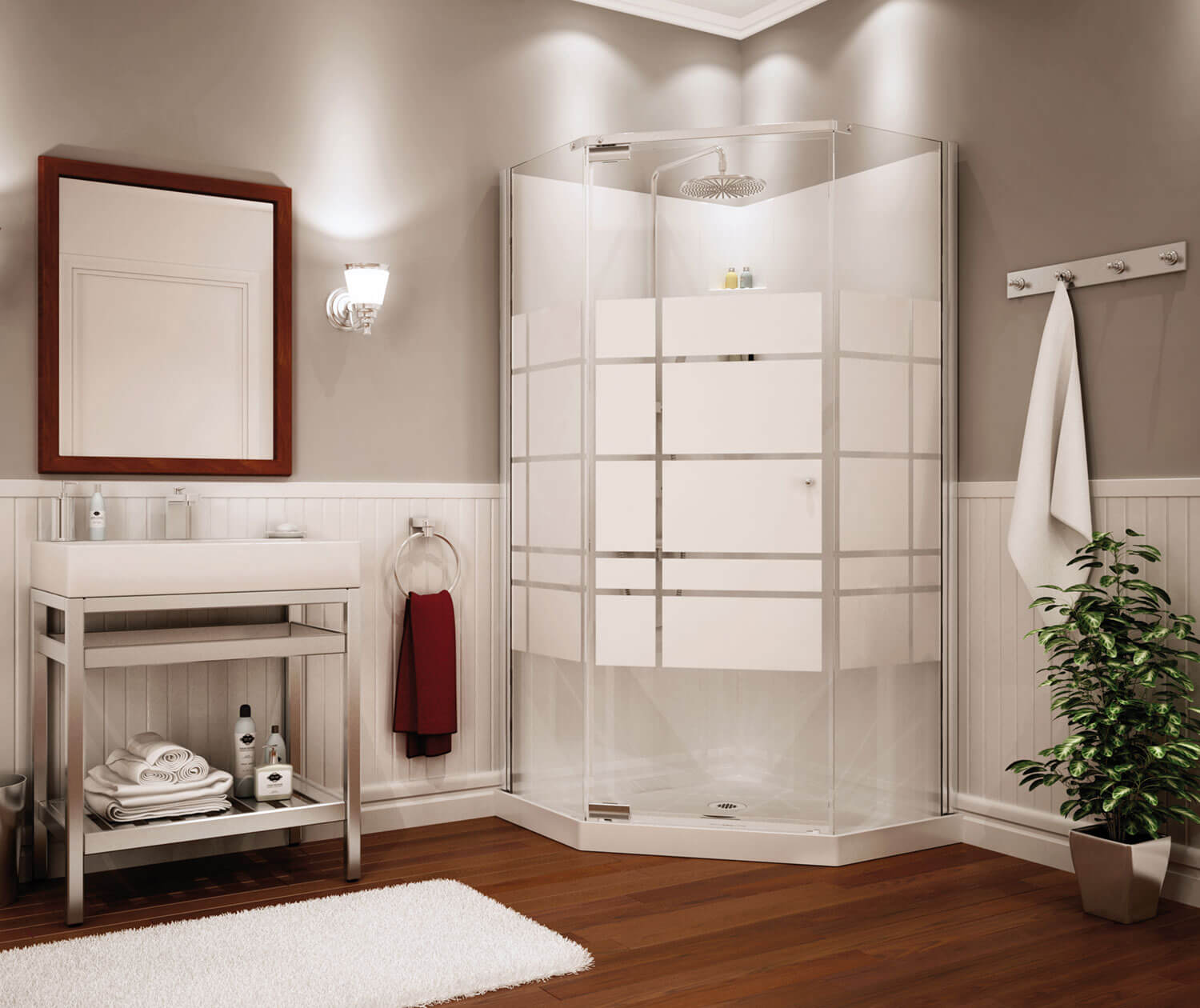 Maax Begonia Soho 36 x 36 Polystyrene Center Drain Shower Kit in White with Soho glass in Chrome 105618-000-129-102