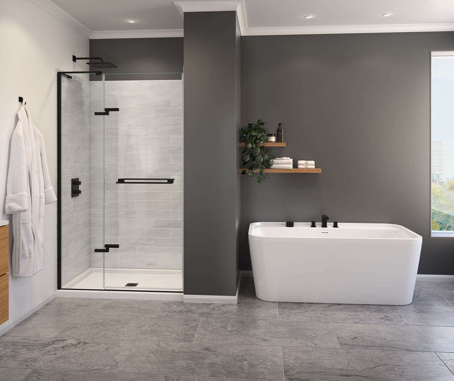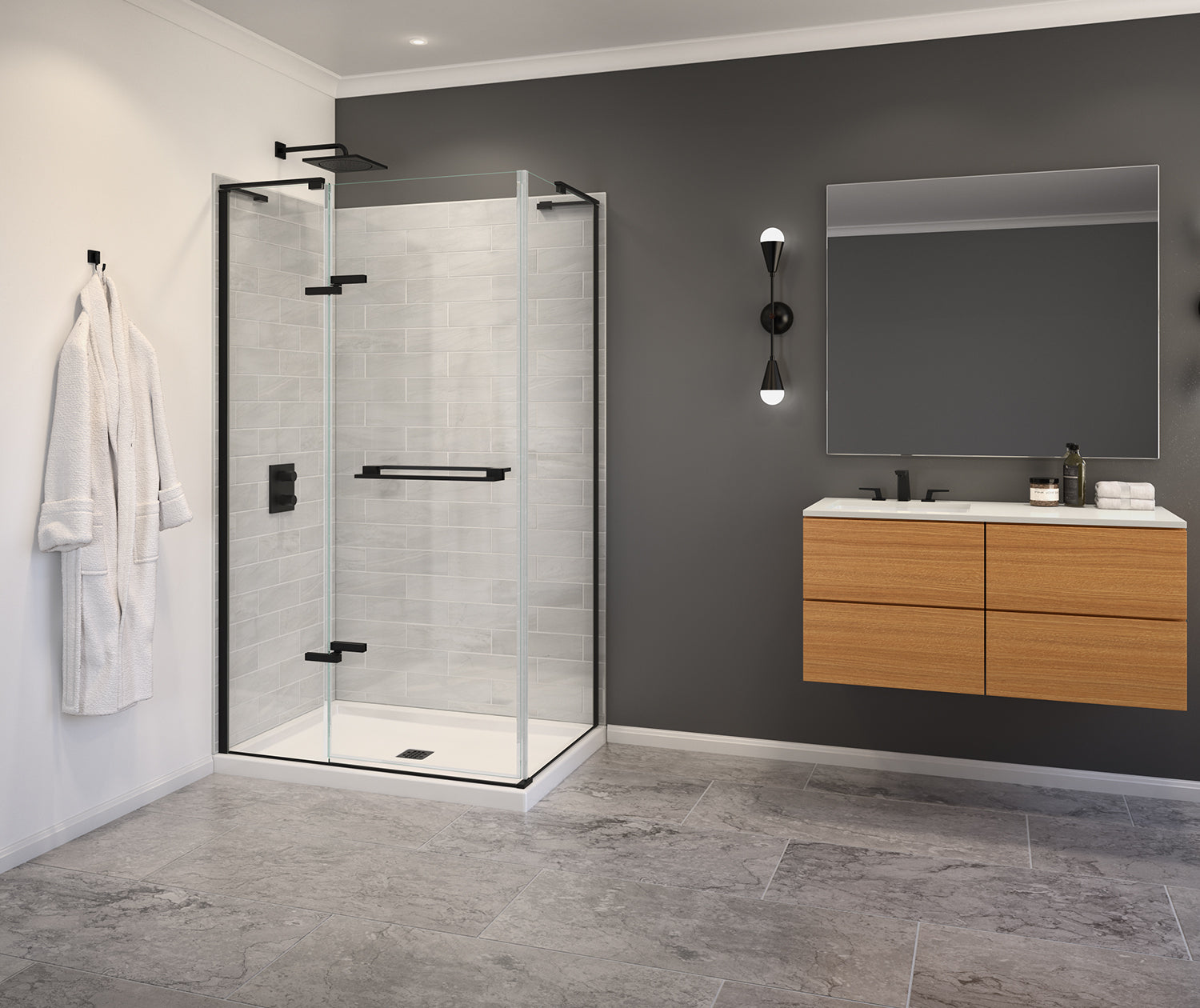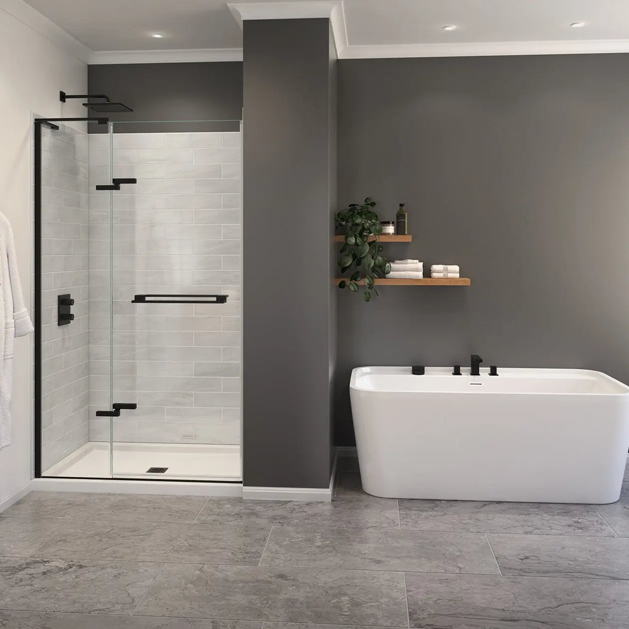 Capella 78 44-47 x 78 in. 8 mm Pivot Shower Door for Alcove Installation with GlassShield® glass in Matte Black