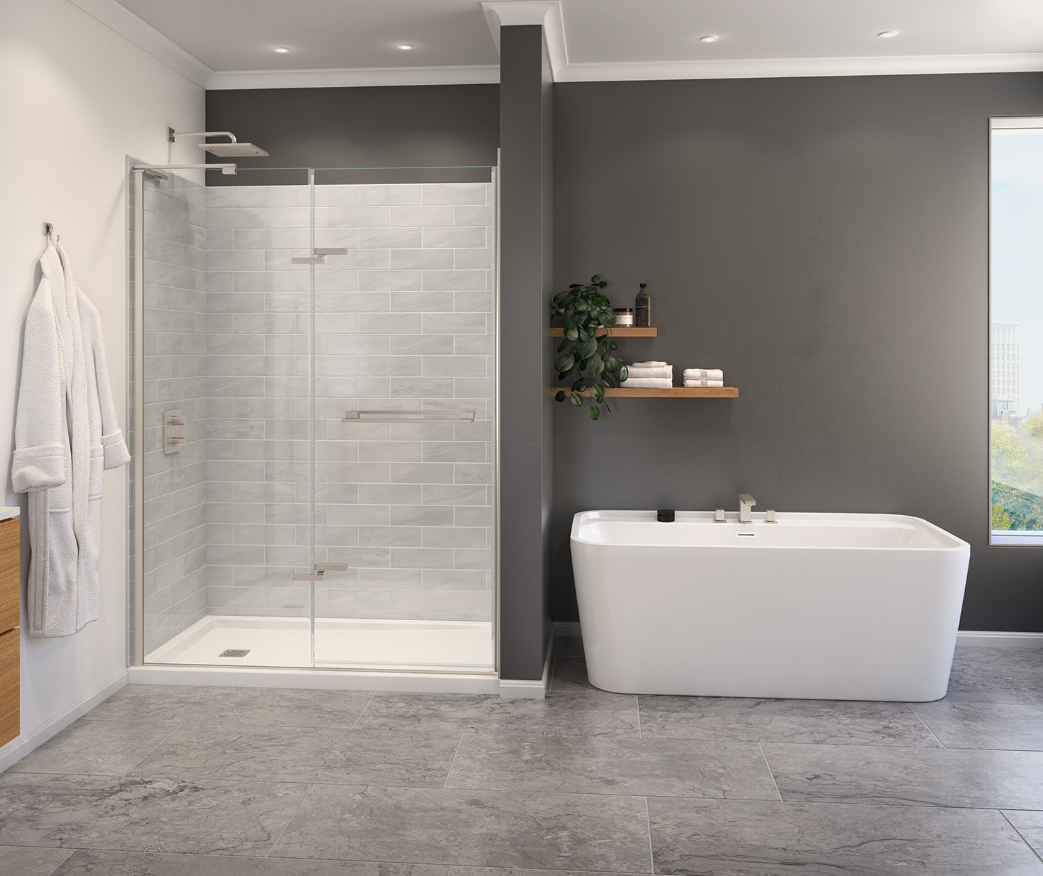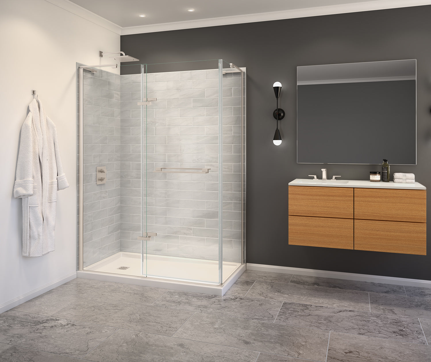 Capella 78 56-59 x 78 in. 8 mm Pivot Shower Door for Alcove Installation with GlassShield® glass in Brushed Nickel