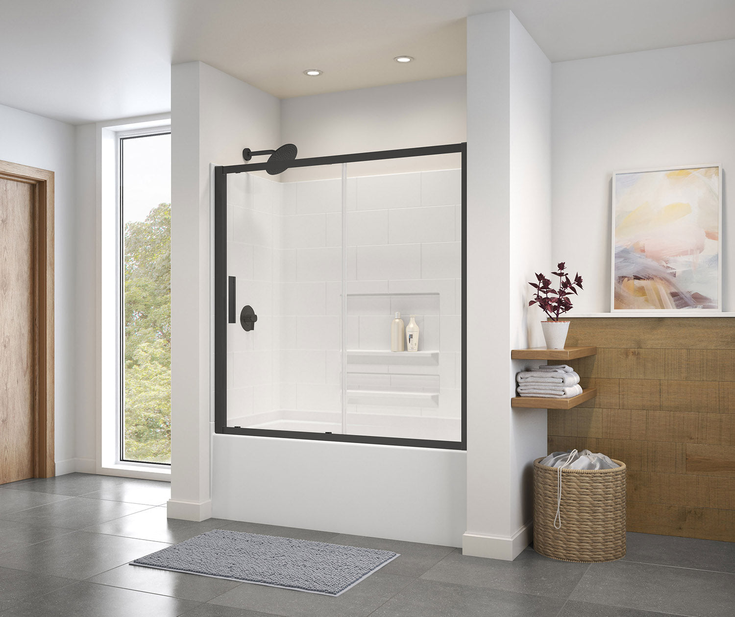 Connect 57-58 ½ x 57 in. 6mm Sliding Tub Door for Alcove Installation with Clear glass in Matte Black