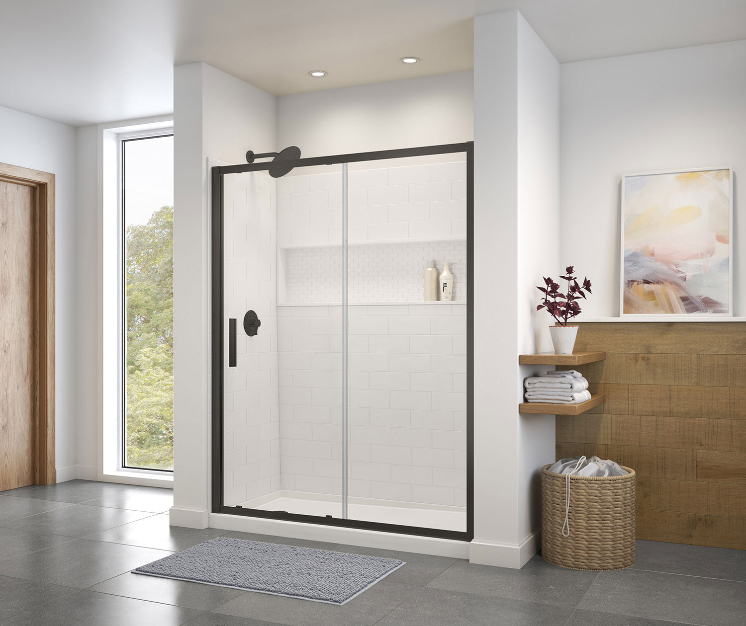 Connect 57-58 ½ x 72 in. 6mm Sliding Shower Door for Alcove Installation with Clear glass in Matte Black