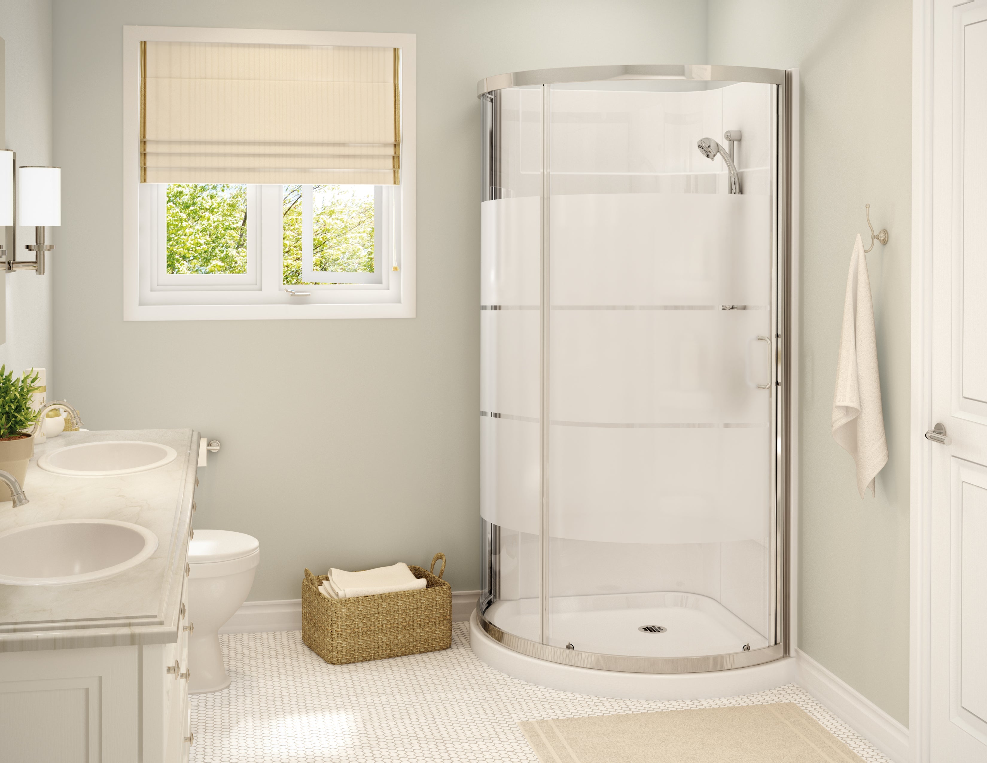 Maax Cyrene 34 x 34 Acrylic Center Drain Shower Kit in White with 3 Stripes glass in Chrome 300001-000-001-103 - Plumbing Market