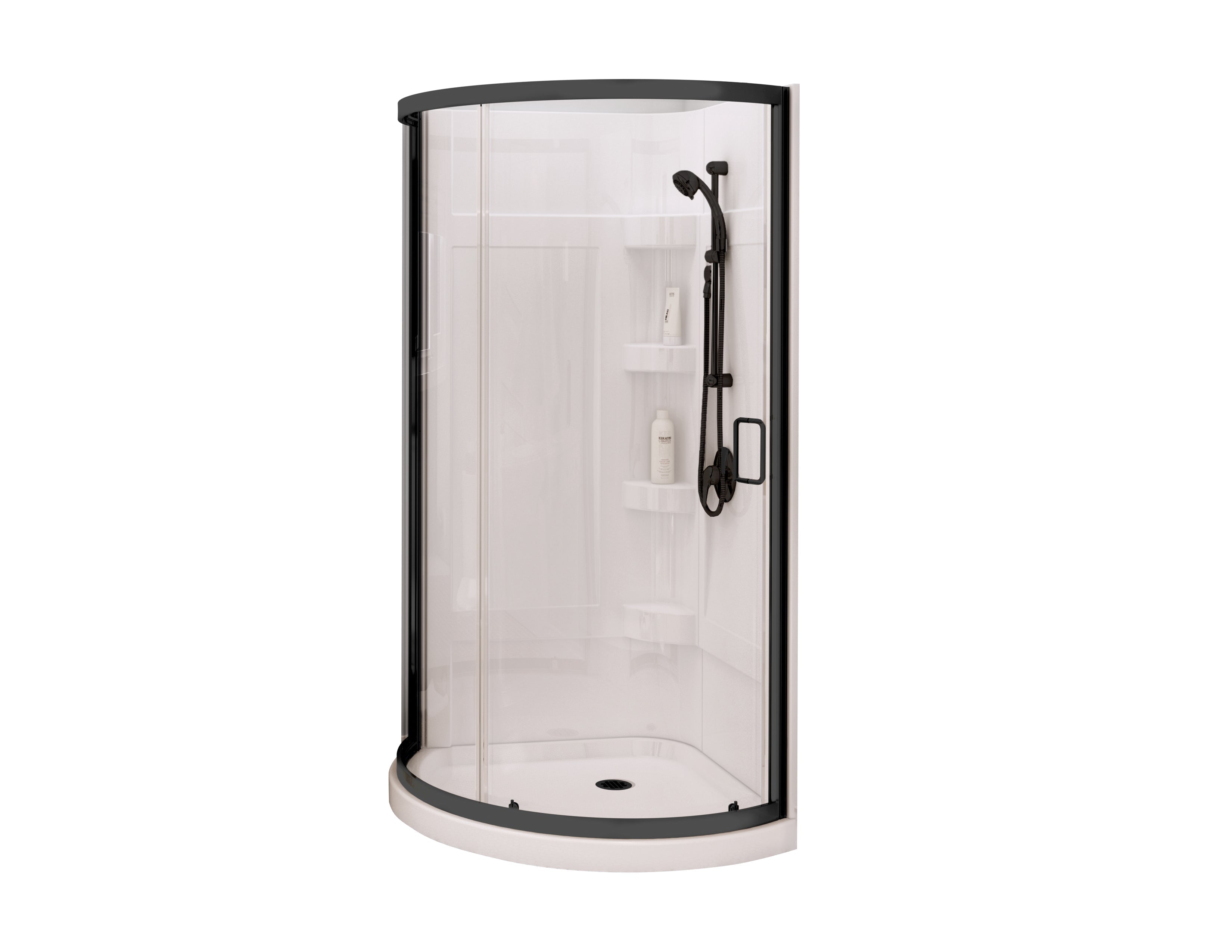 Maax Cyrene 34 x 34 Acrylic Center Drain Shower Kit in White with Clear glass in Matte Black 300001-000-001-105