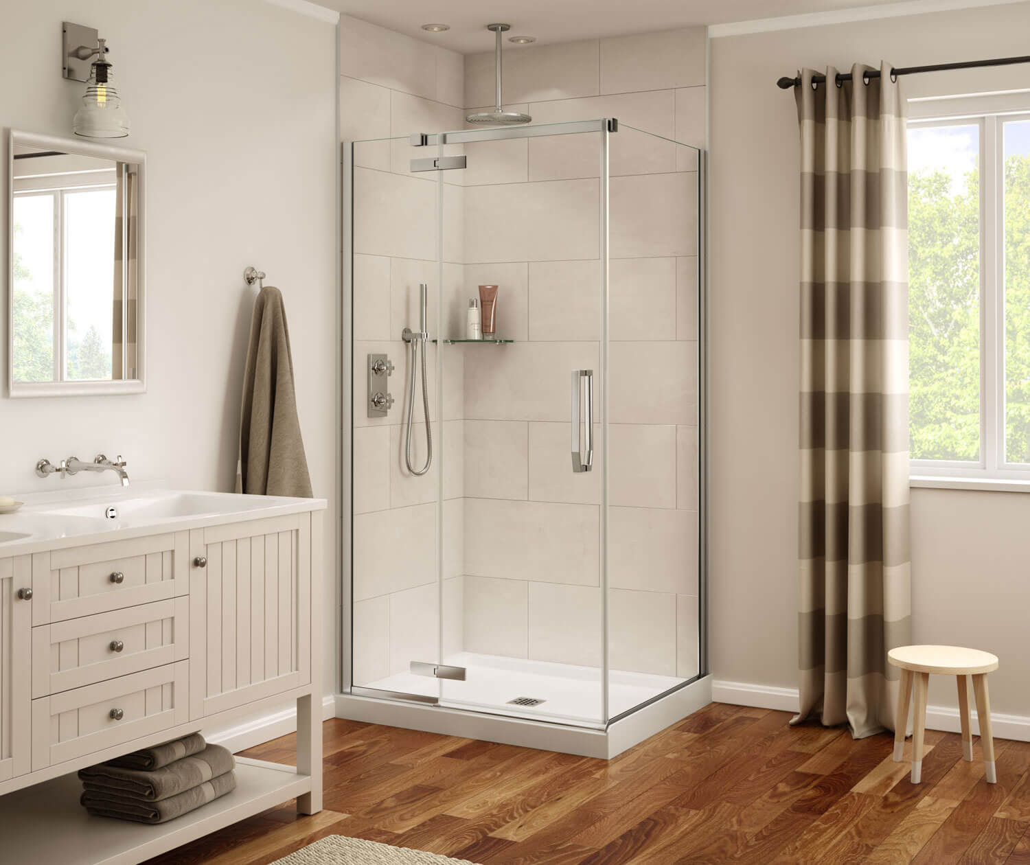 Davana Rectangular 42 x 34 x 75 in. 8mm Pivot Shower Door for Corner Installation with Clear glass in Chrome