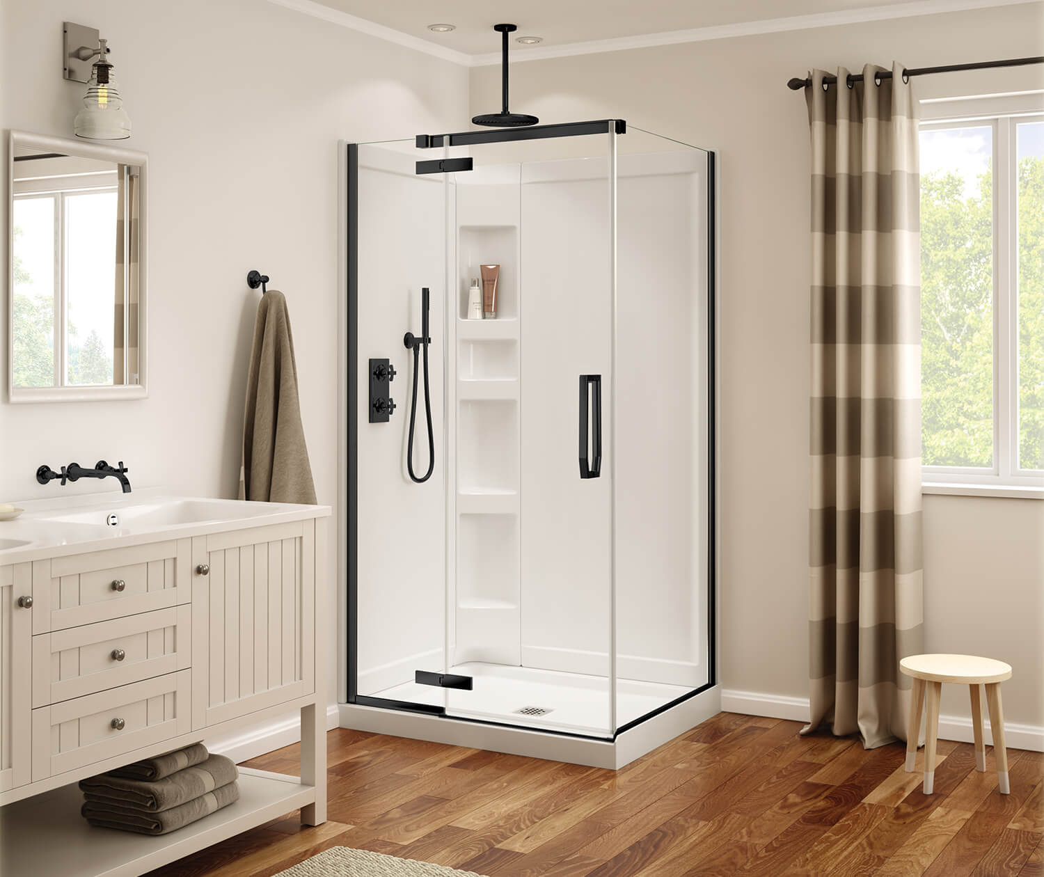 Davana Rectangular 42 x 34 x 75 in. 8mm Pivot Shower Door for Corner Installation with Clear glass in Matte Black