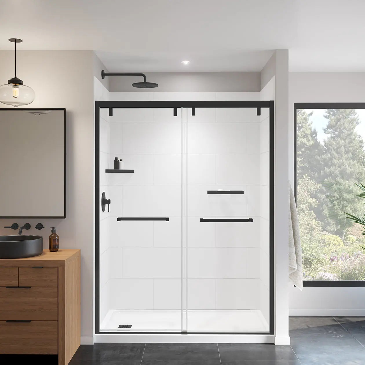 • Solid 1-piece wall panels designed to be cut-to-fit to ensure compatibility with all configurations, to be installed directly on drywall or over tile for maximum versatility.