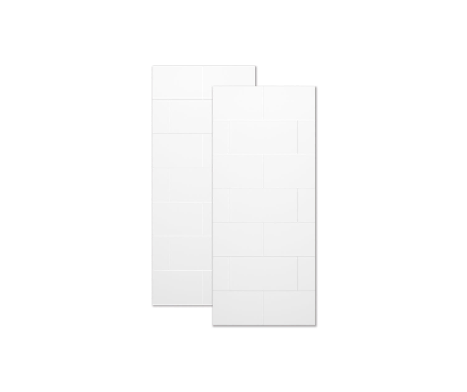 • 36-inch wide shower or tub-shower 2 sidewalls kit with a 12-inch by 24-inch horizontal Traditional Subway Tile pattern in a beautiful matte white finish