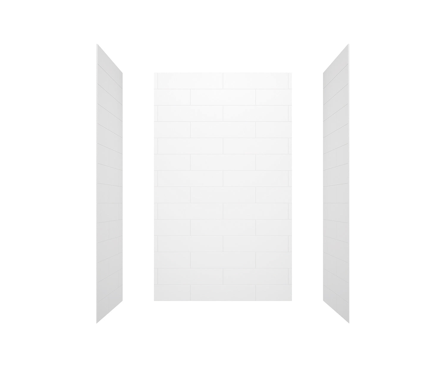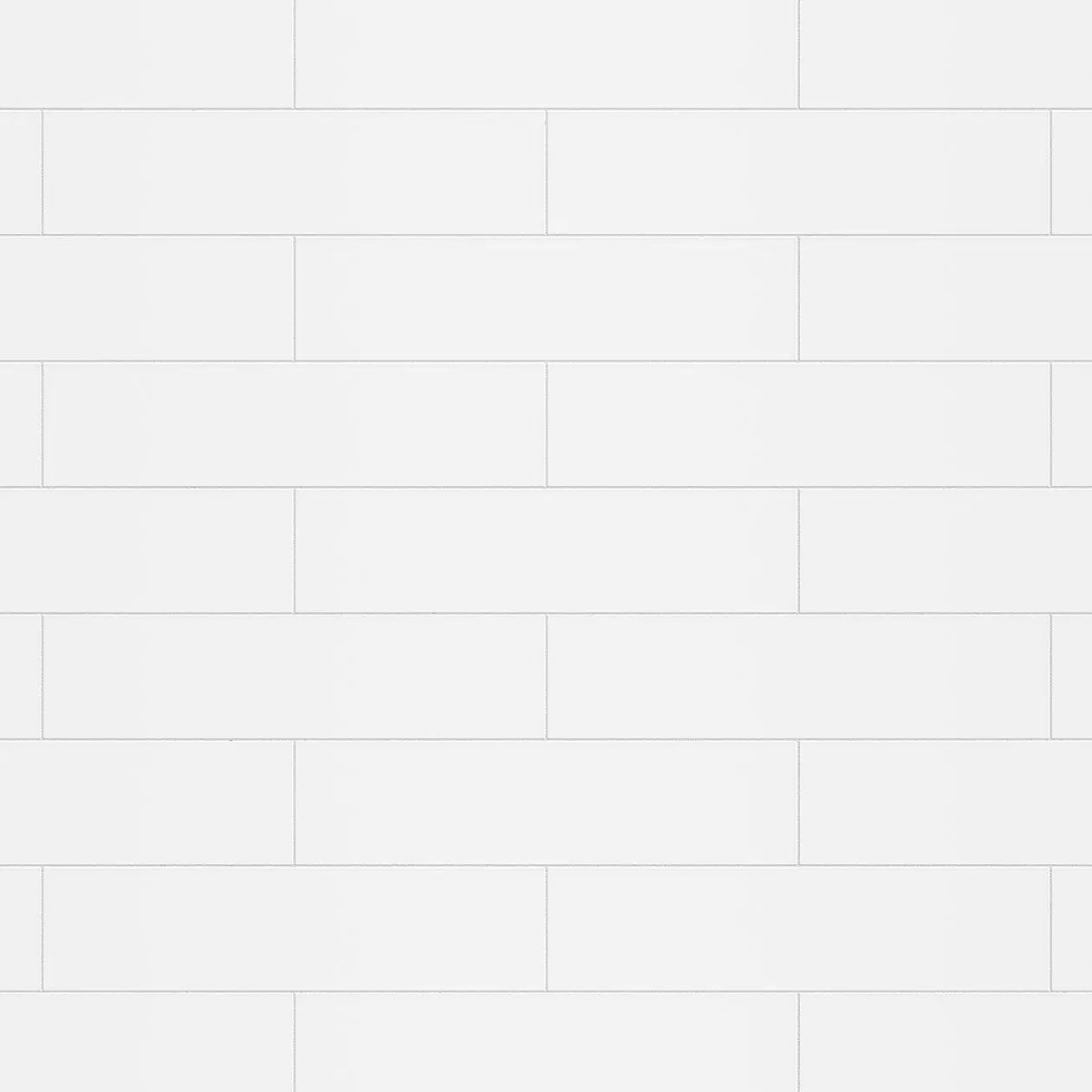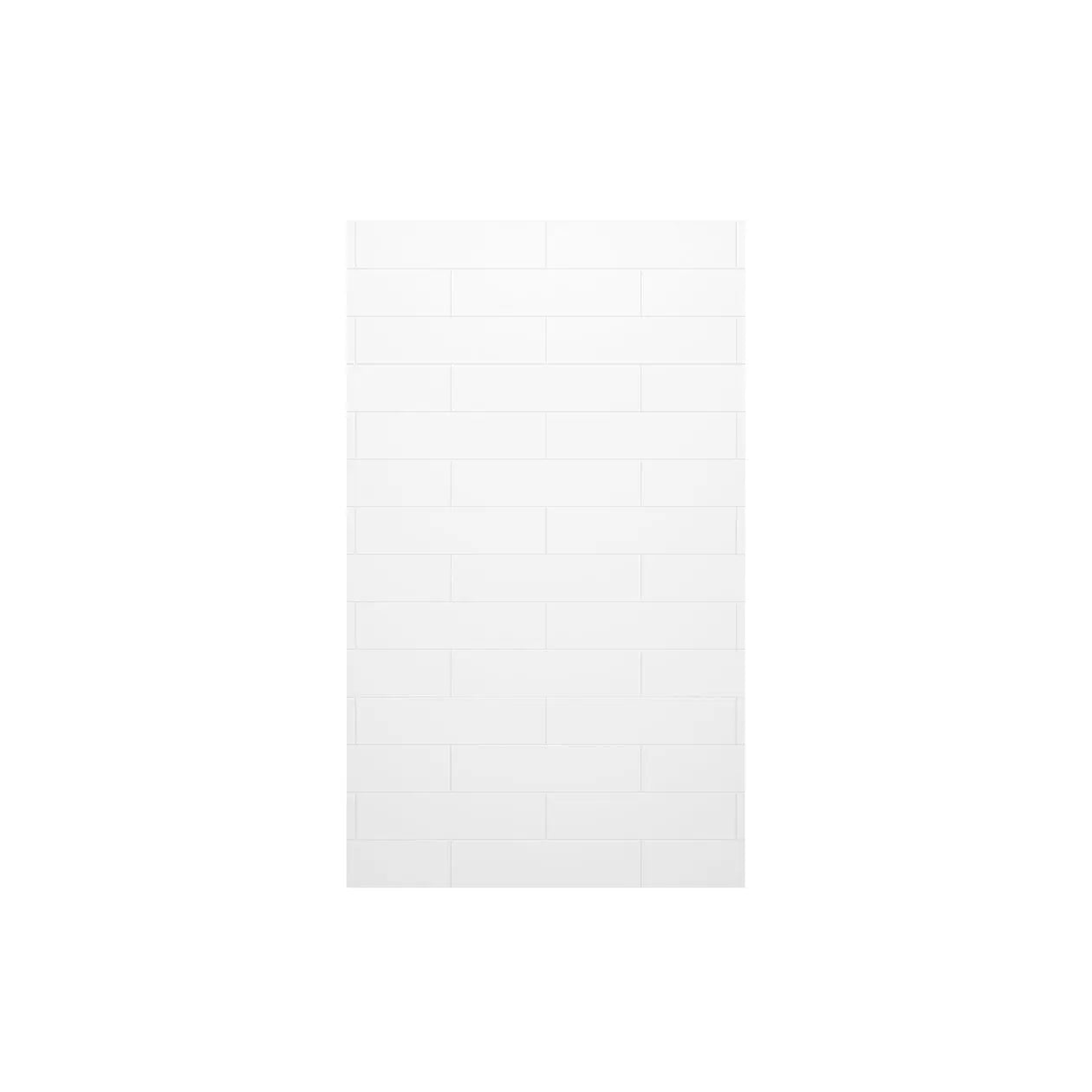 • 50-inch wide shower or tub-shower backwall with a 6-inch by 24-inch horizontal Modern Subway Tile pattern in a beautiful matte white finish