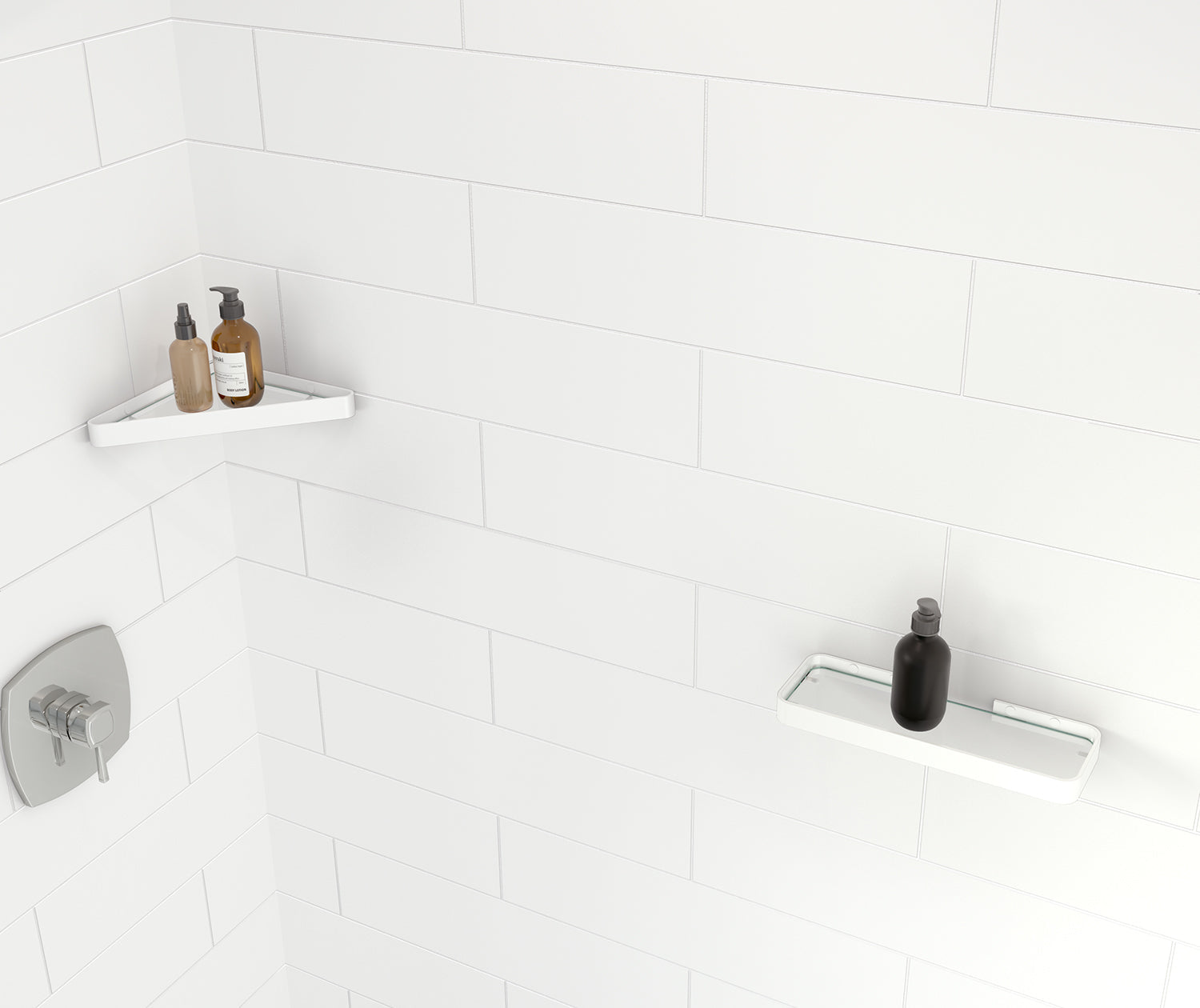 • For added convenience built in a stylish storage solution, see MAAX Glass Shelves featured in the image carousel. Refer to part number: 10042818 Corner Shelf, 10042819 Rectangular Shelf.