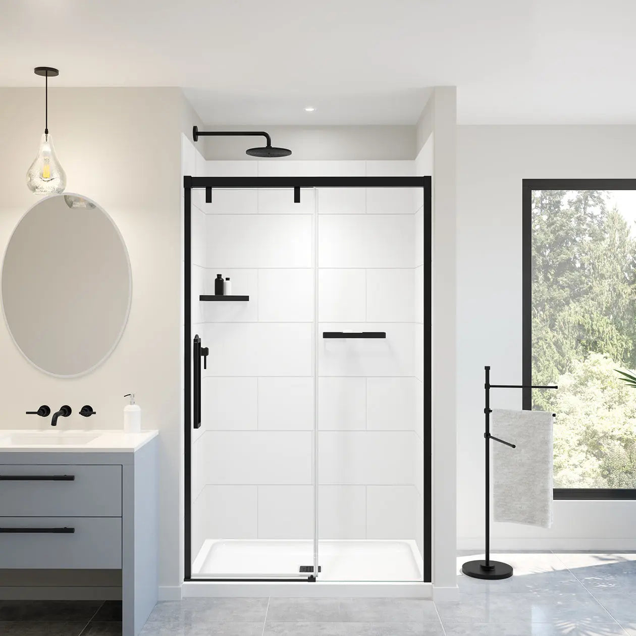 • Solid 1-piece wall panels designed to be cut-to-fit to ensure compatibility with all configurations, to be installed directly on drywall or over tile for maximum versatility.