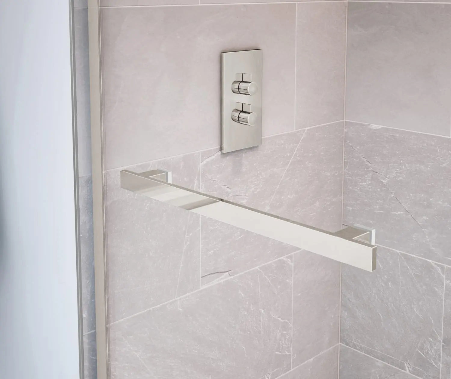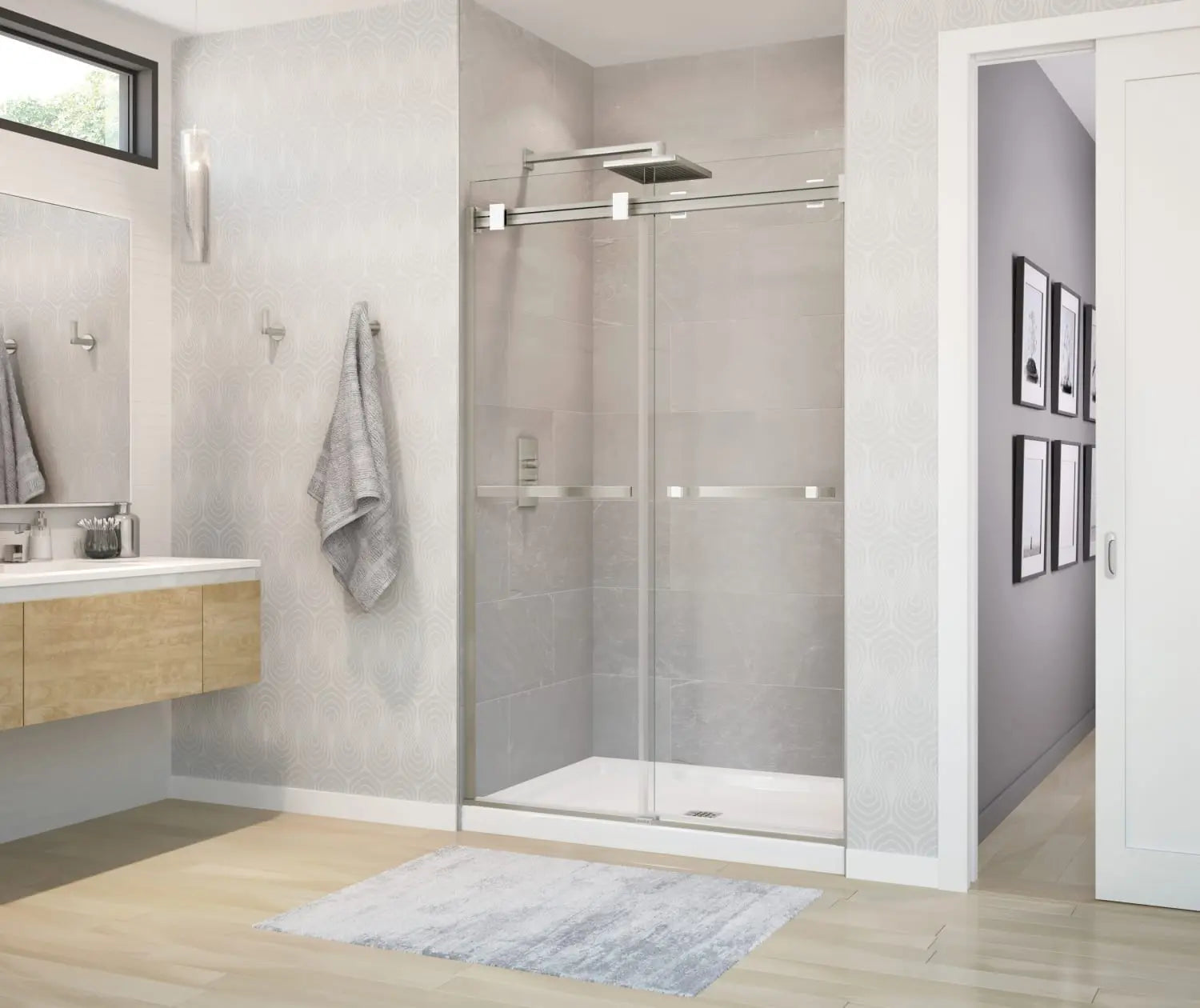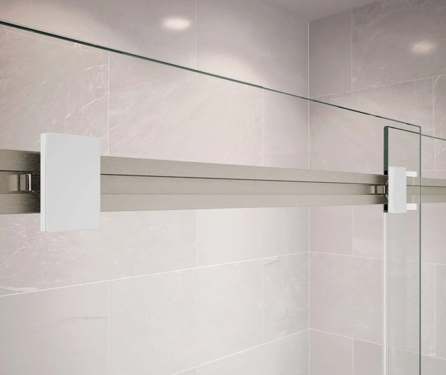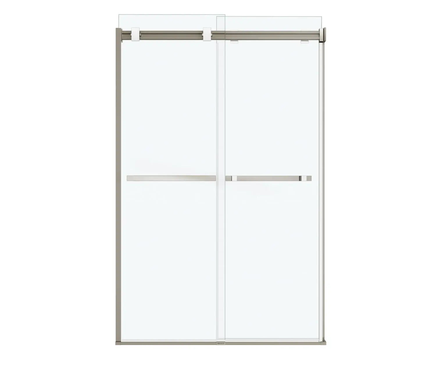 Duel 44-47 x 70 ½-74 in. 8 mm Bypass Shower Door for Alcove Installation with Clear glass in Brushed Nickel & Matte White