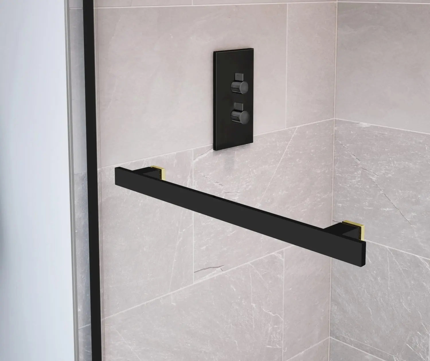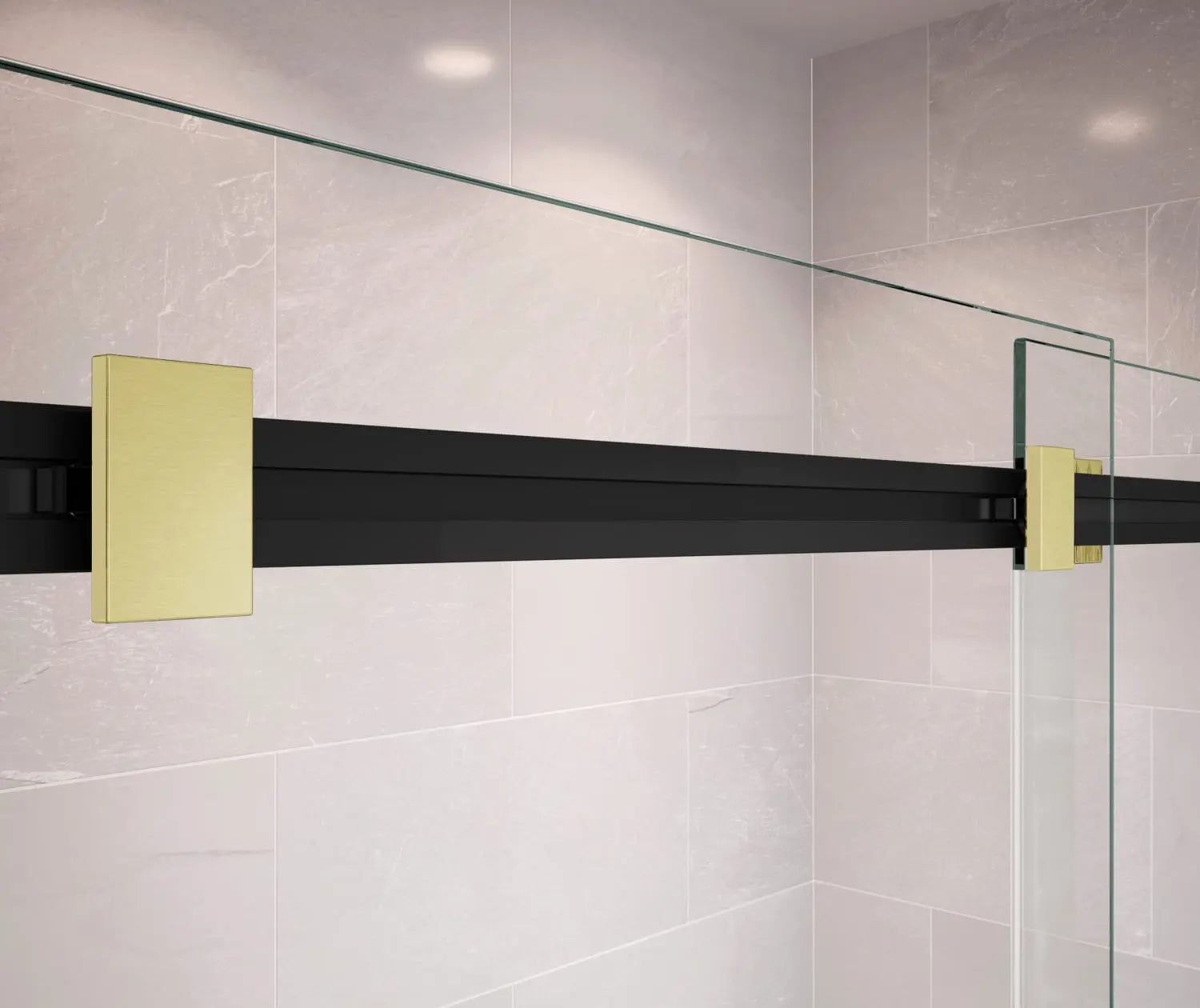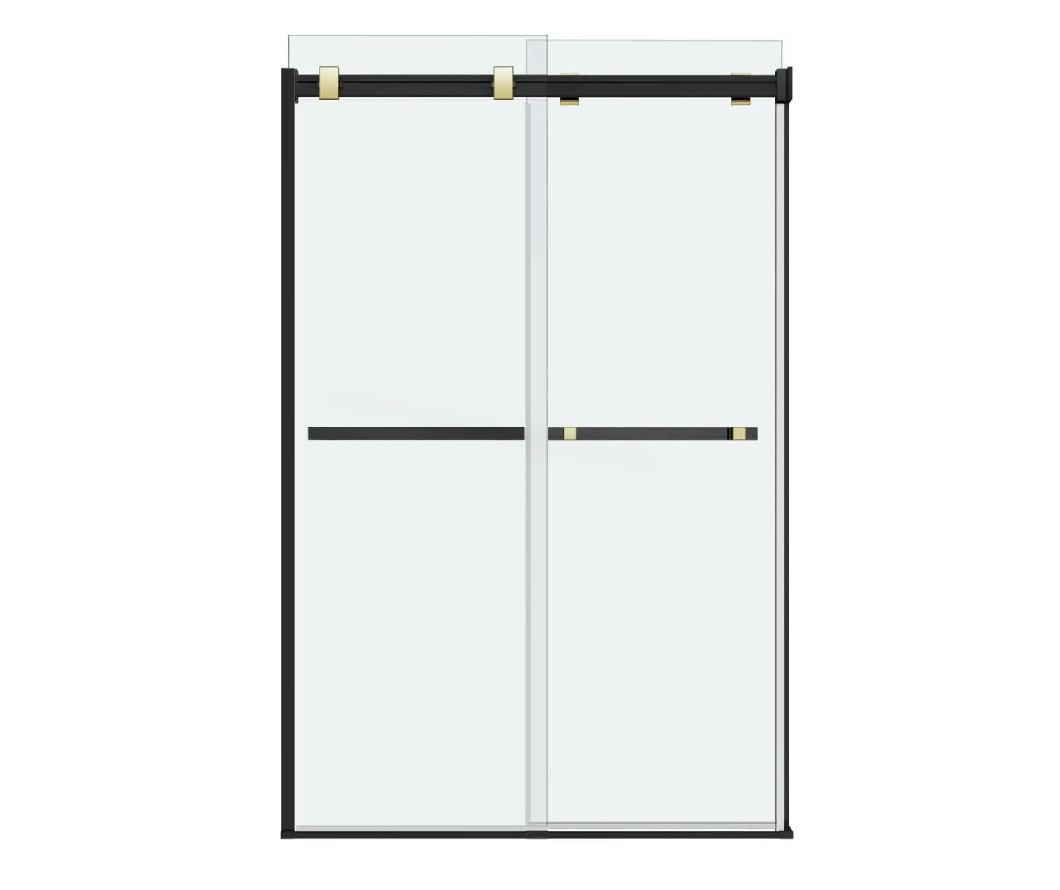 Duel 44-47 x 70 ½-74 in. 8 mm Bypass Shower Door for Alcove Installation with Clear glass in Matte Black & Brushed Gold