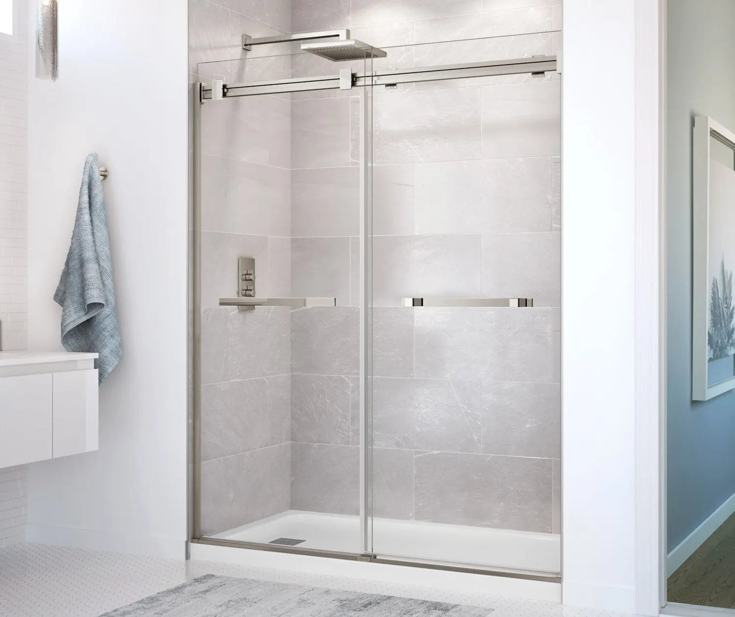 Duel 56-58 ½ x 70 ½-74 in. 8mm Bypass Shower Door for Alcove Installation with Clear glass in Brushed Nickel