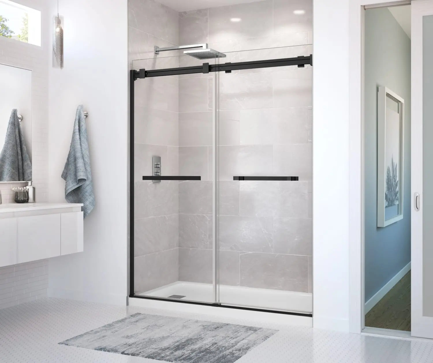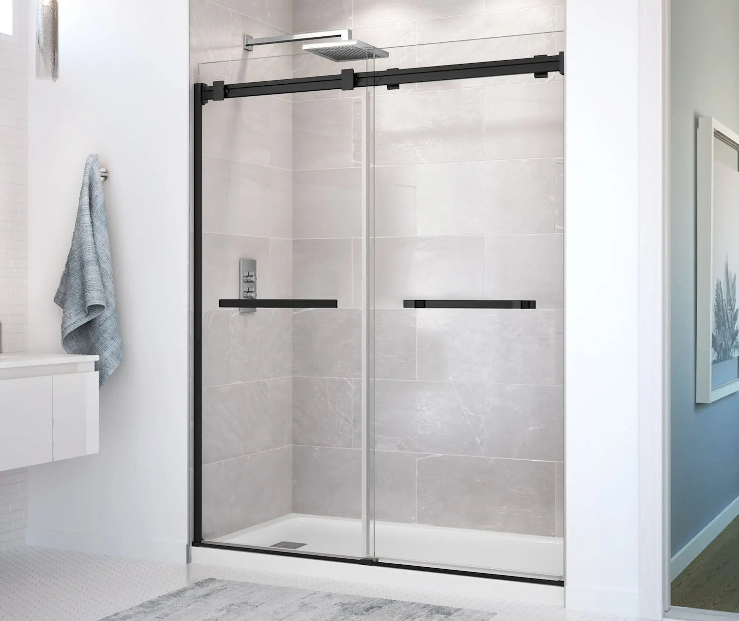 Duel 56-58 ½ x 70 ½-74 in. 8mm Bypass Shower Door for Alcove Installation with Clear glass in Matte Black