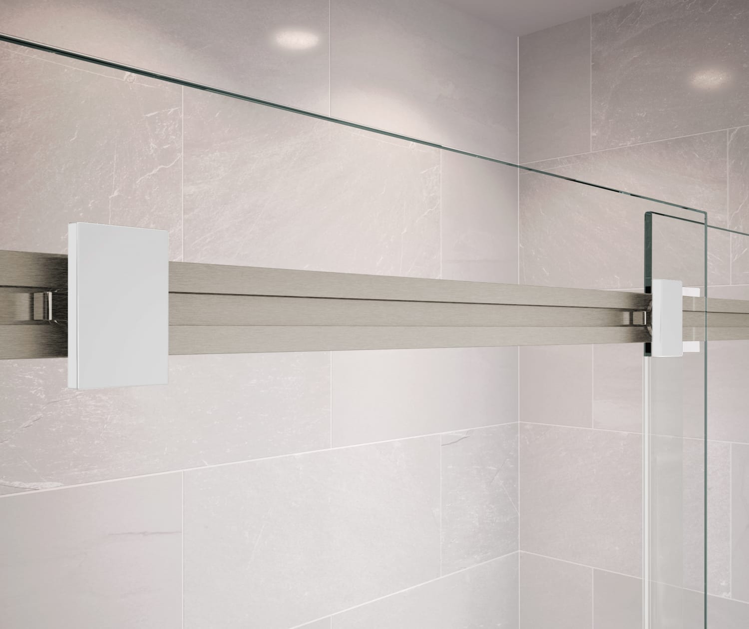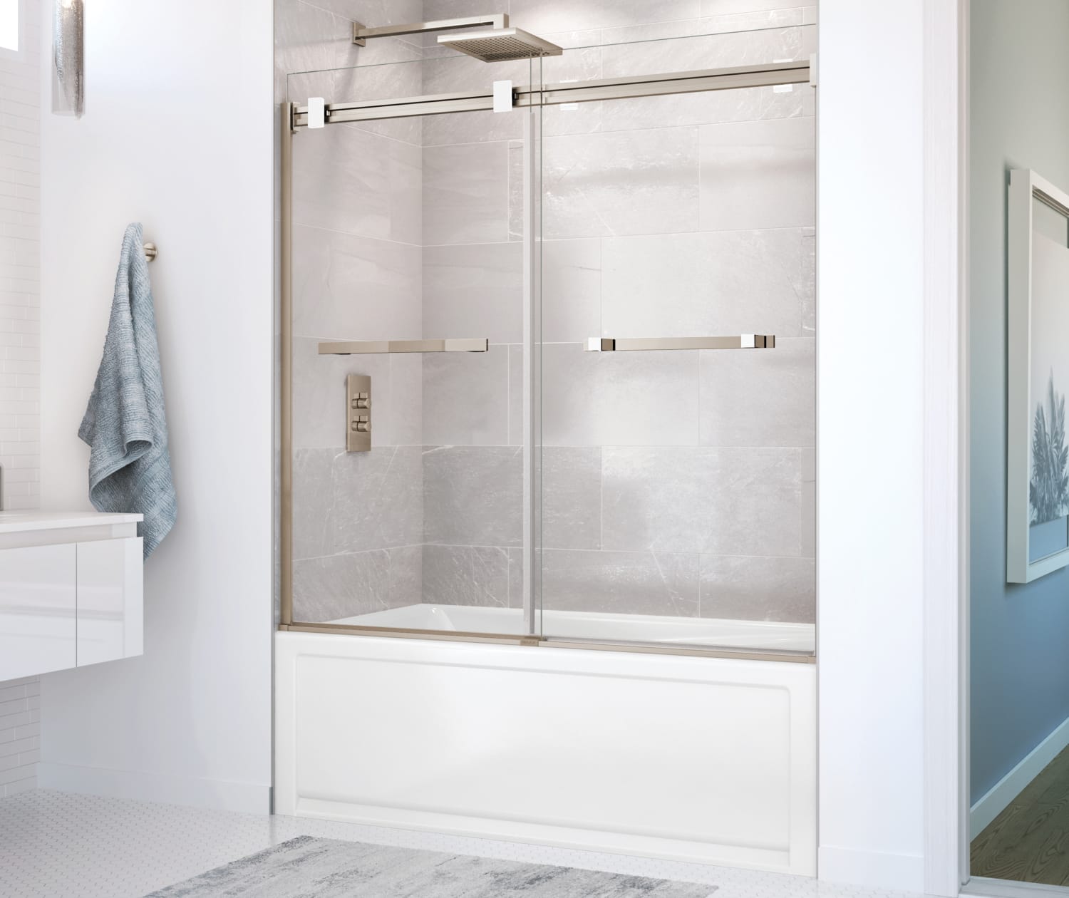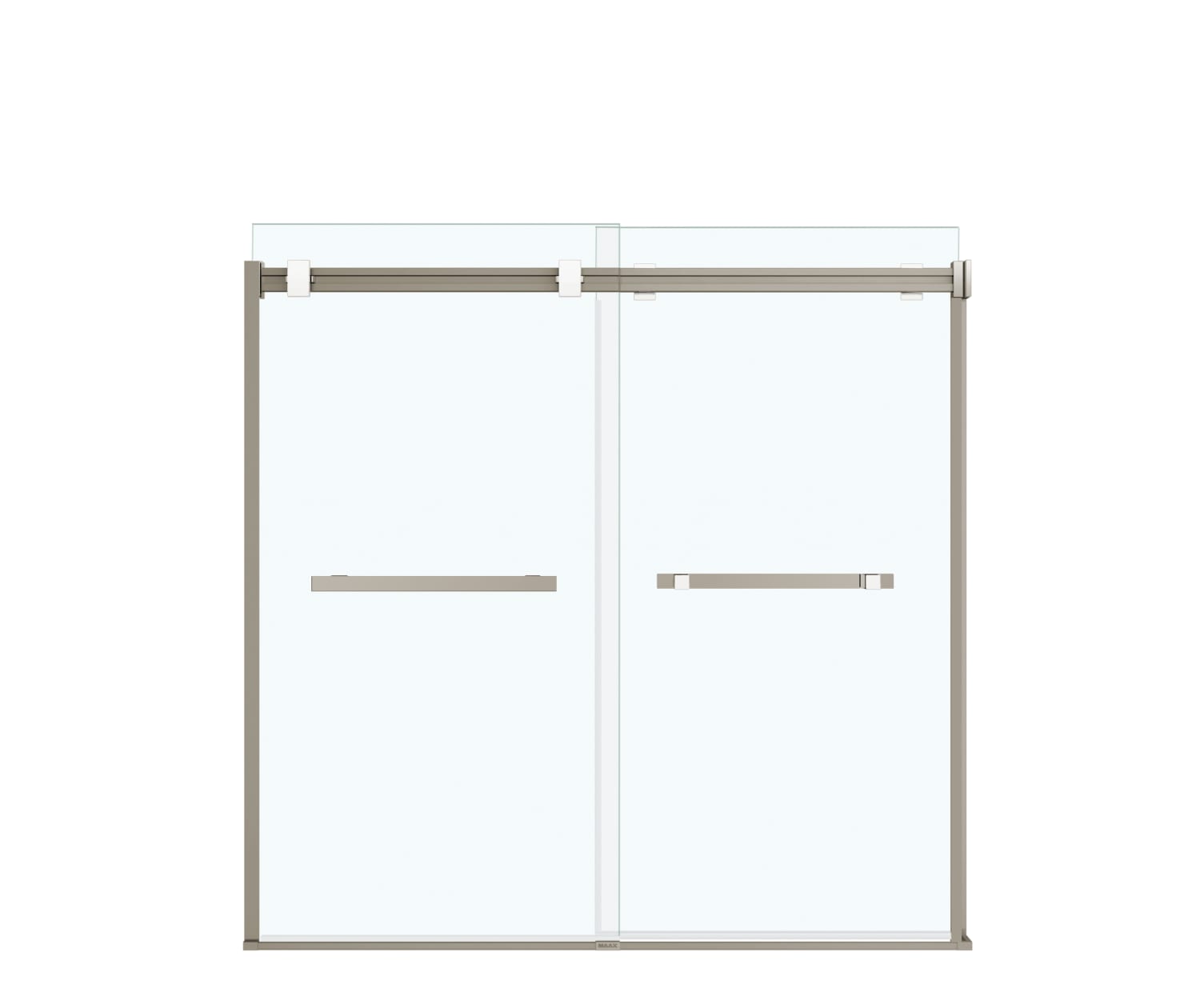 Duel 56-59 x 55 ½ x 59 in. 8 mm Bypass Tub Door for Alcove Installation with Clear glass in Brushed Nickel & Matte White