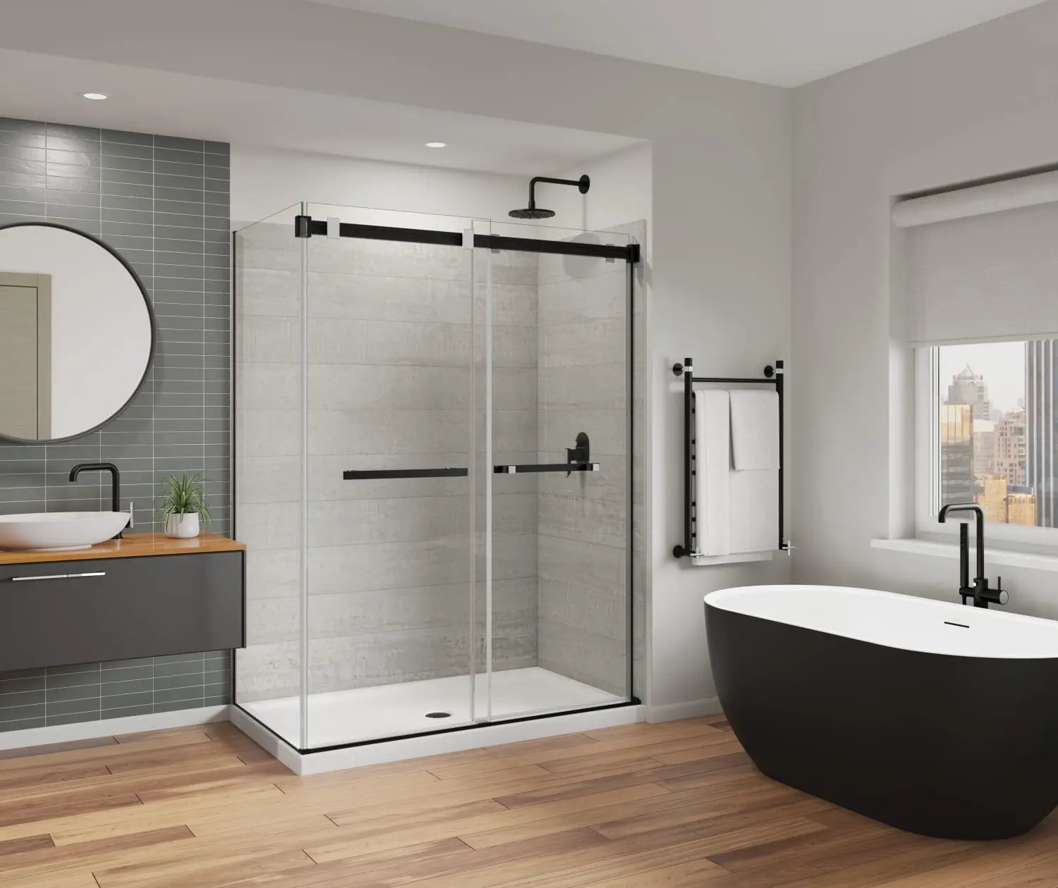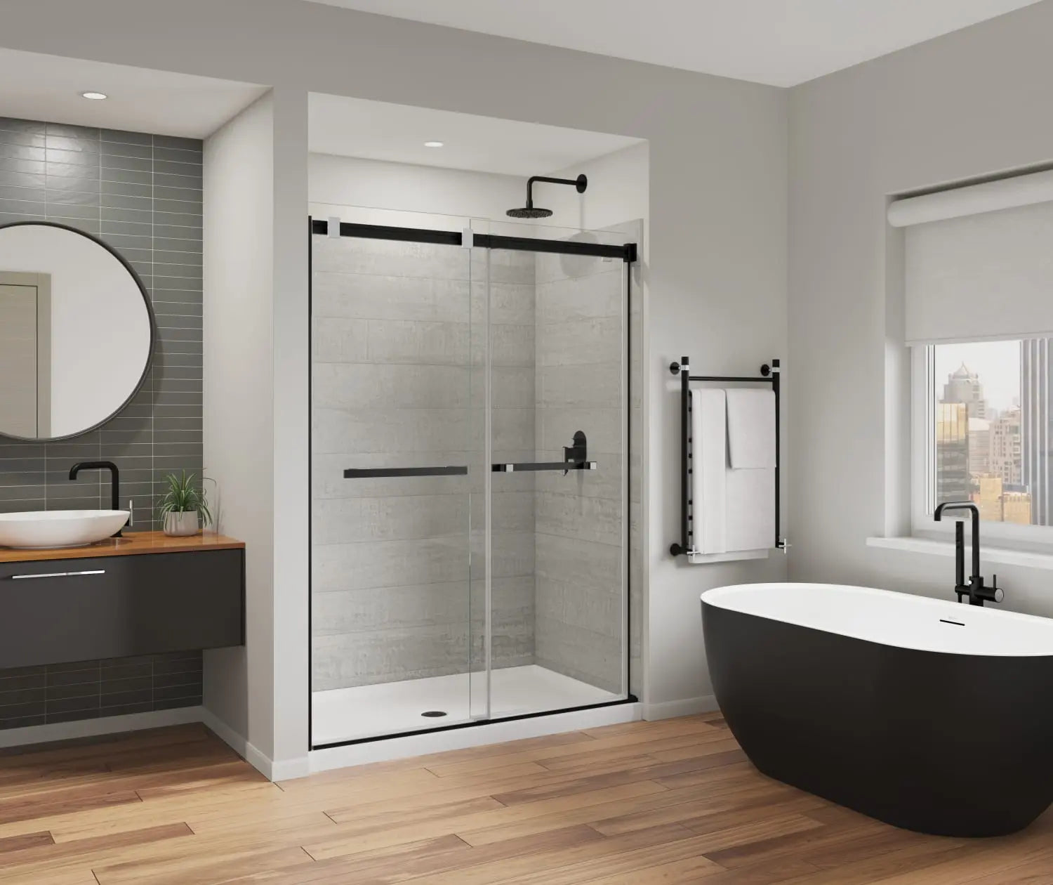 Duel Alto 56-59 X 78 in. 8mm Bypass Shower Door for Alcove Installation with GlassShield® glass in Matte Black & Chrome