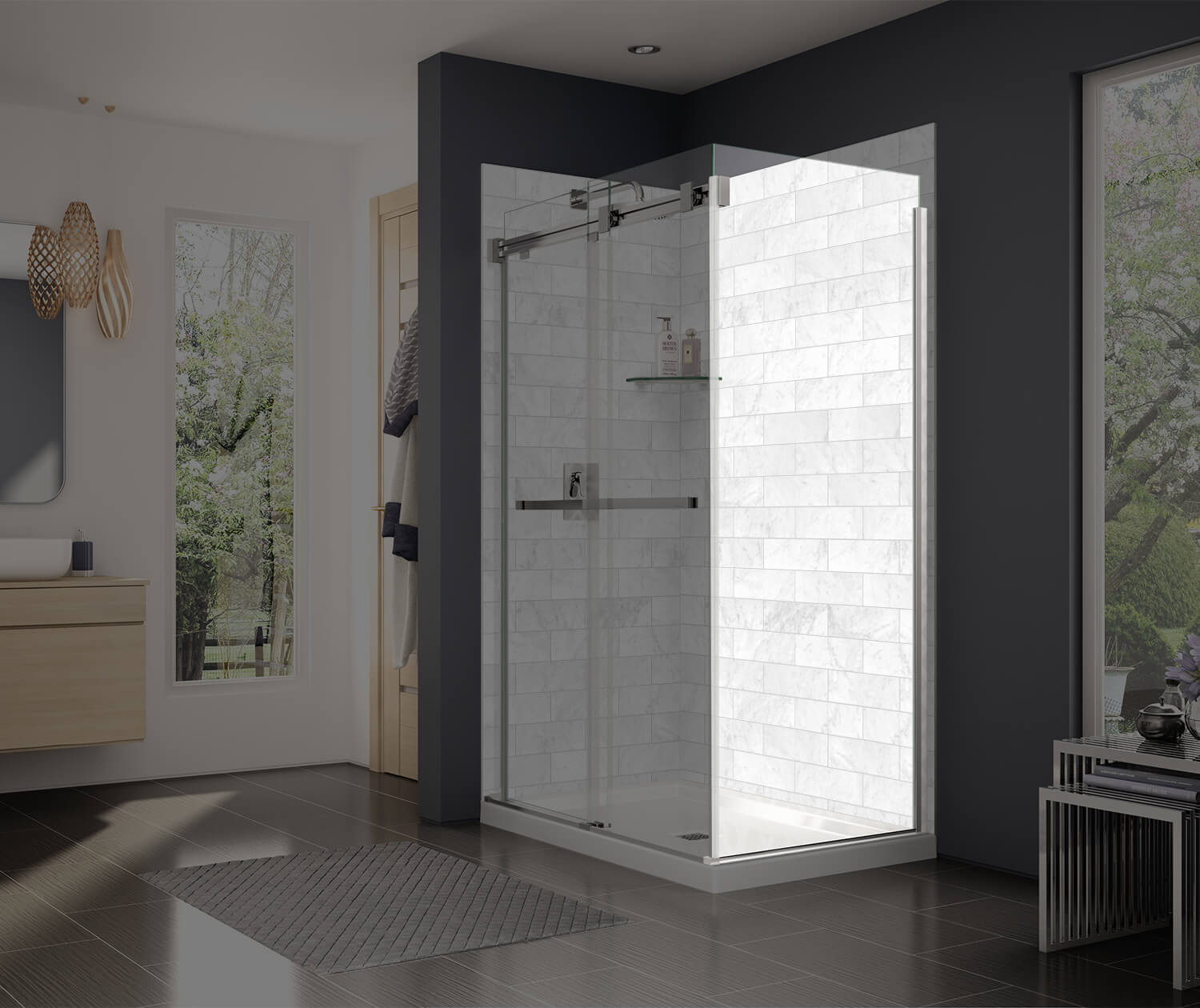 Duel and Inverto Return Panel for 34 in. Base with Clear glass in Chrome