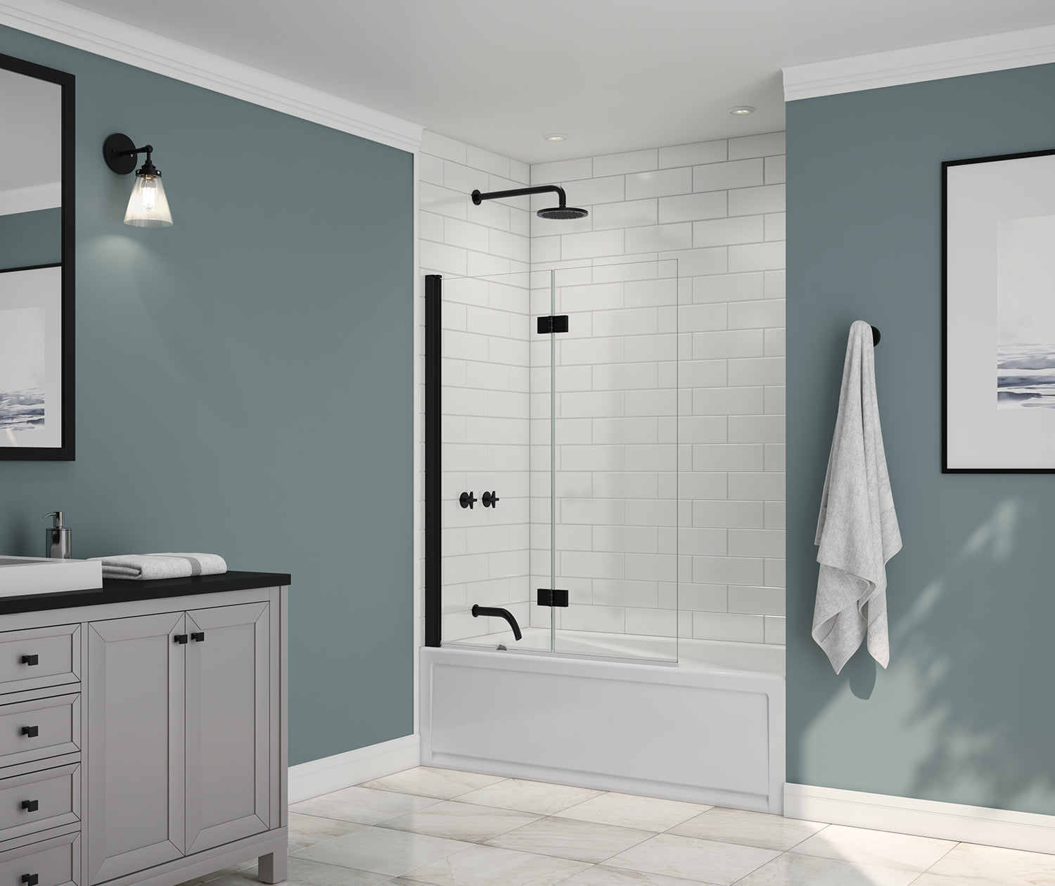 Edge Access 42 x 56 in. 6 mm Pivot Tub Screen for Alcove Installation with Clear glass in Matte Black