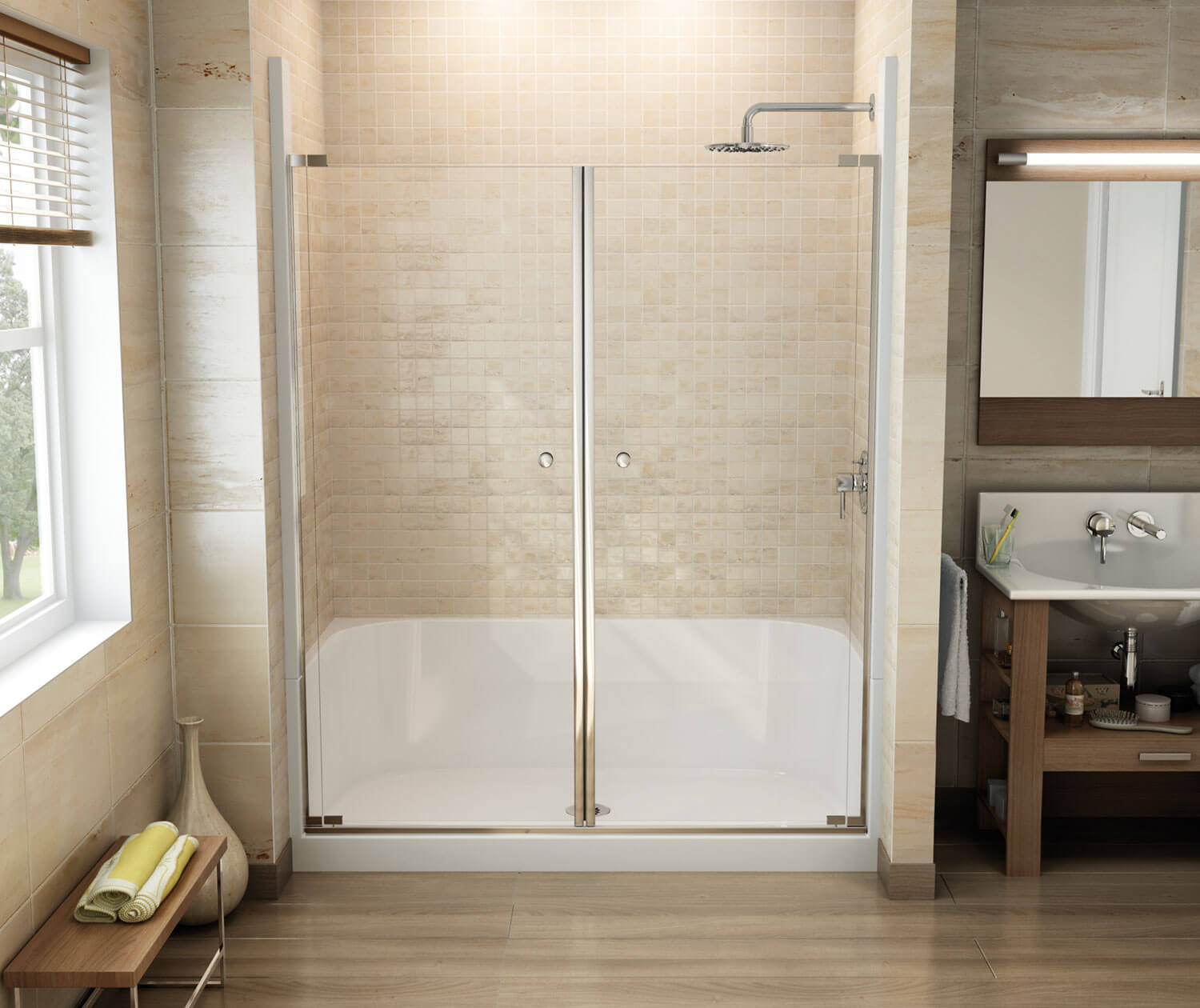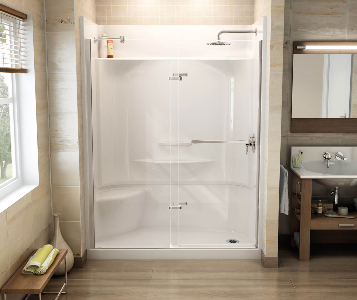 Essence SH-6030 AcrylX Alcove Center Drain Four-Piece Shower in White