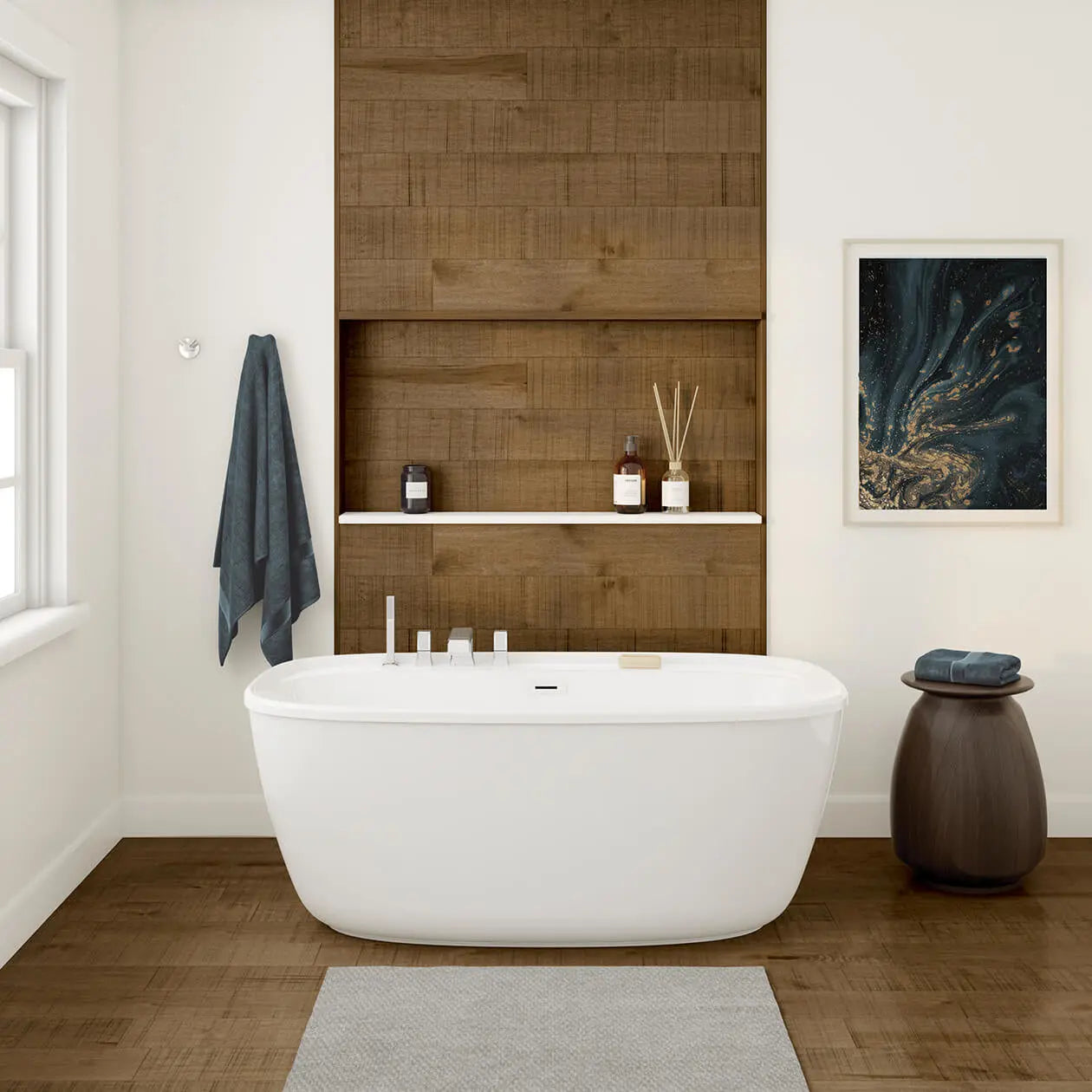 Fontana 58 x 32 AcrylX Freestanding Center Drain Bathtub in White with White Skirt