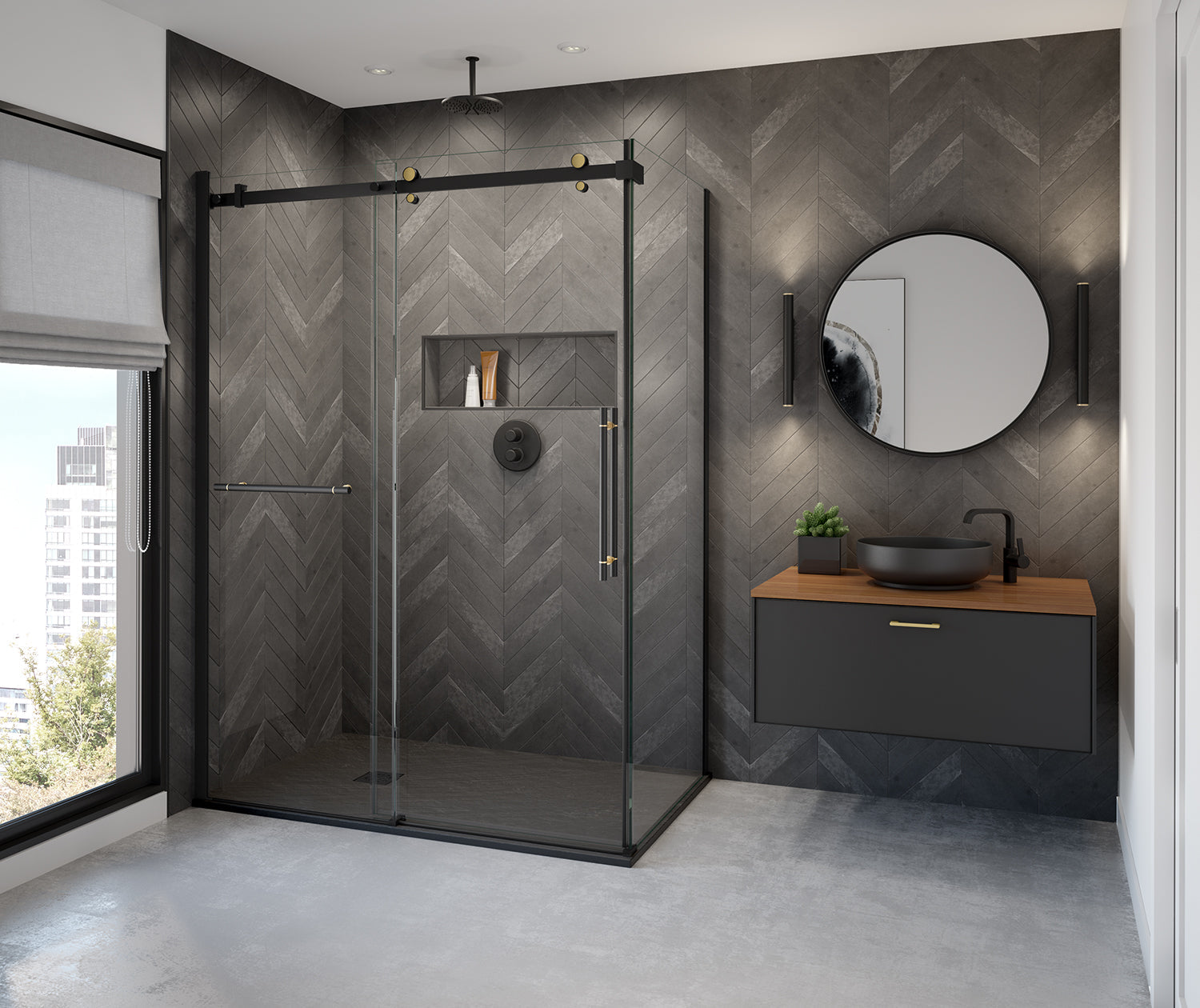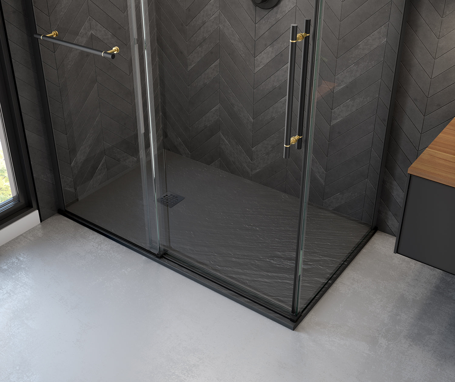 Fossil Base 6036 Natural Stone Alcove or Corner Shower Base with End Drain in Graphite