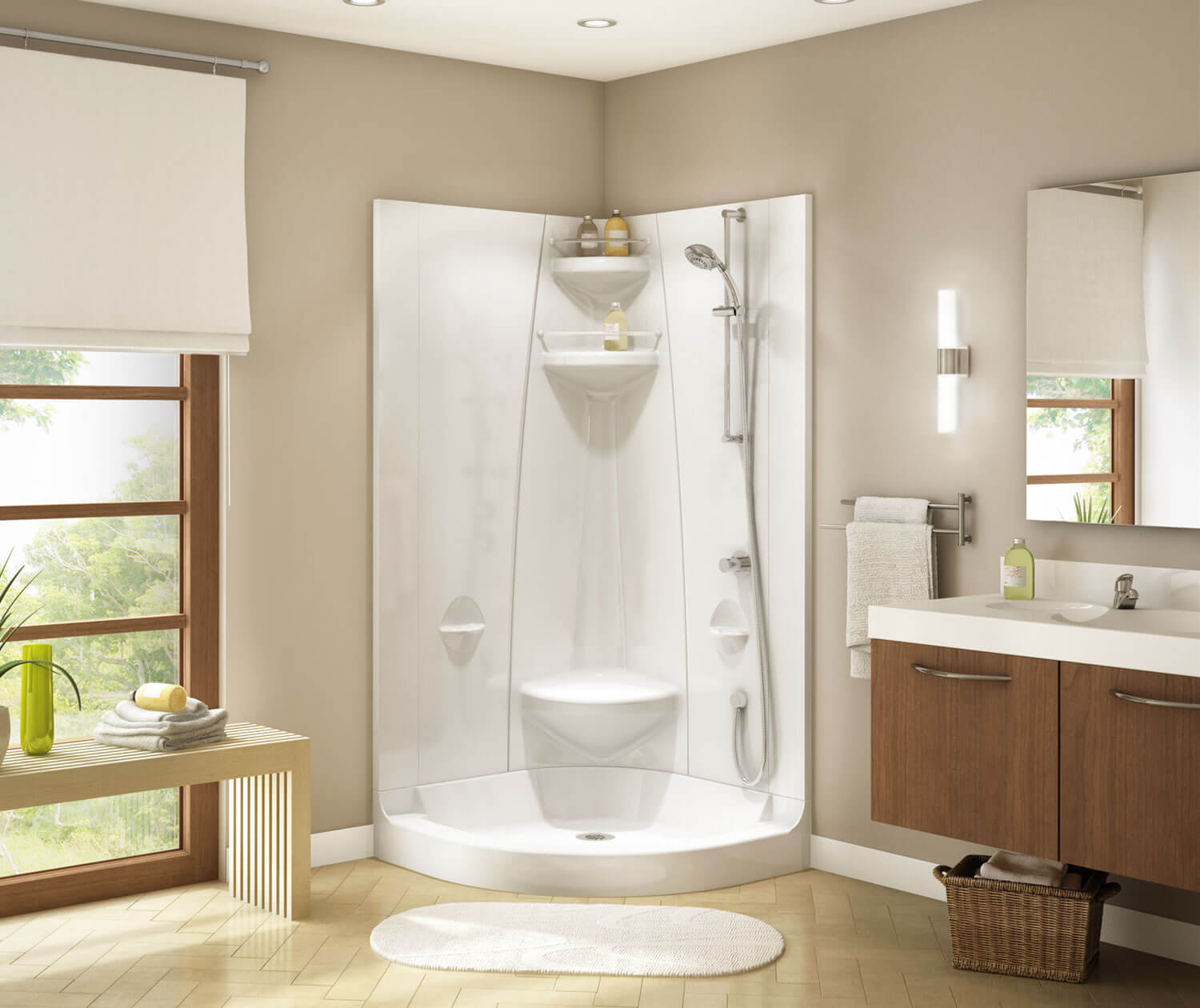 Maax Freestyle 40 Neo-Round 40 x 40 Acrylic Corner Center Drain One-Piece Shower in White 102998-000-001-100