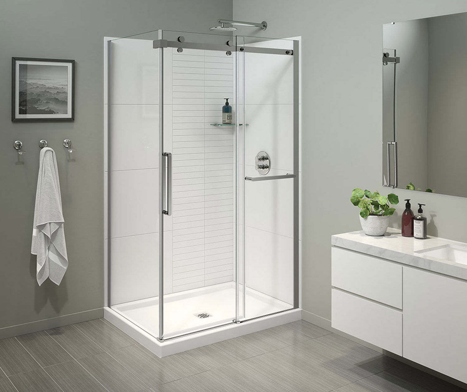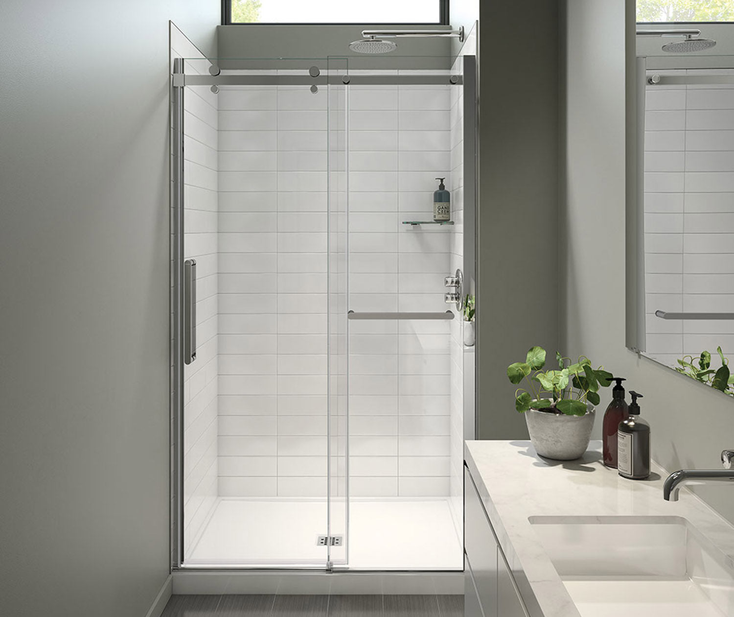 Halo Pro 44 ½-47 x 78 ¾ in. 8 mm Sliding Shower Door with Towel Bar for Alcove Installation with Clear glass in Chrome