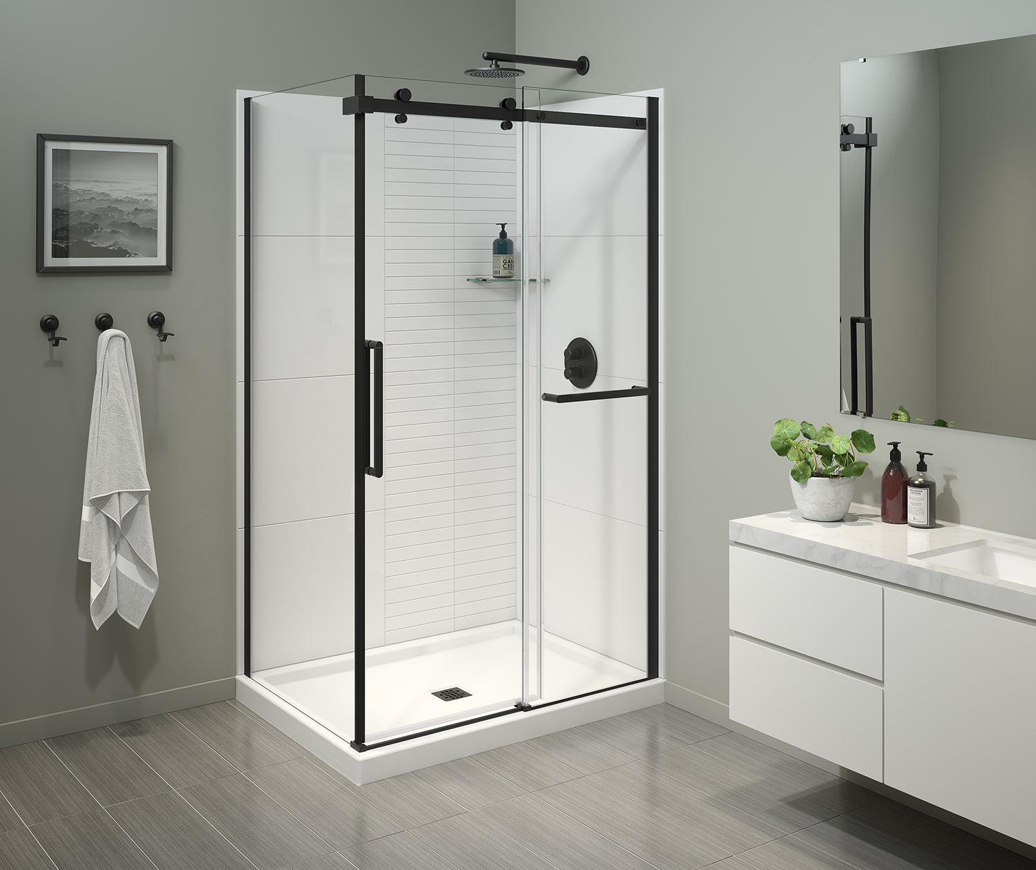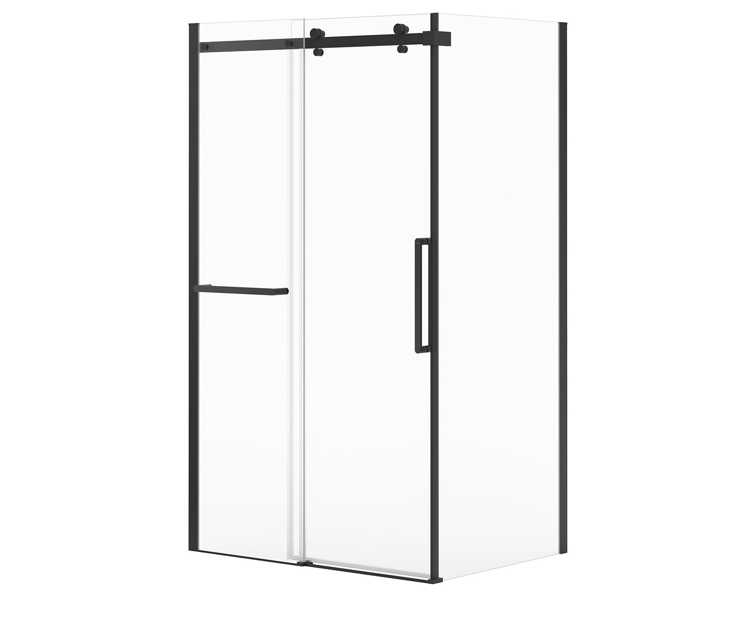 Halo Pro 48 x 32 x 78 3/4 in. 8mm Sliding Shower Door with Towel Bar for Corner Installation with Clear glass in Matte Black
