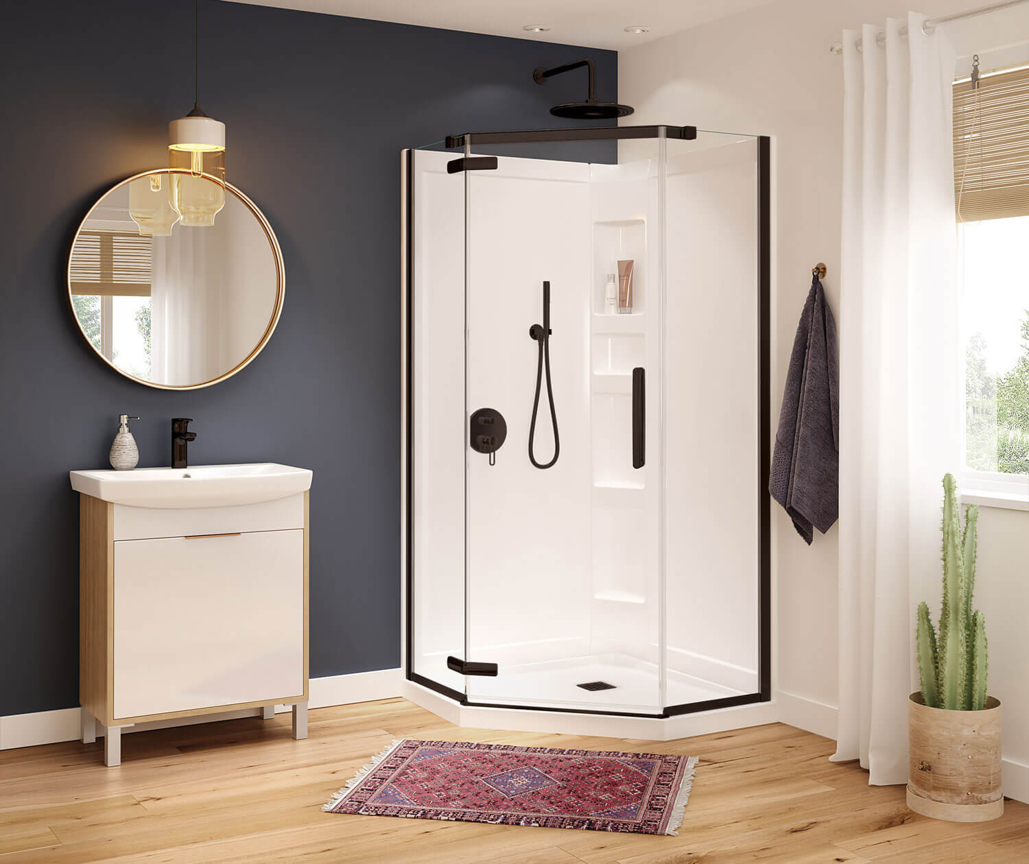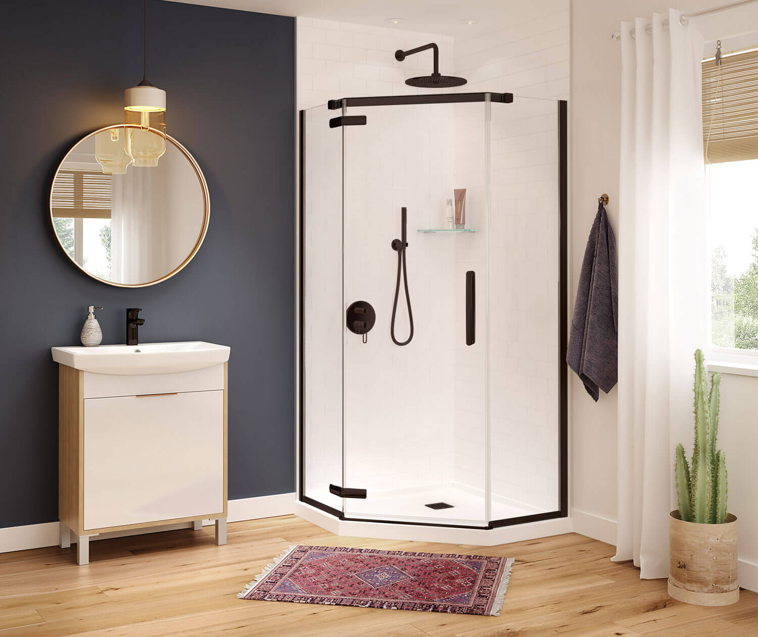 Hana Neo-angle 38 x 38 x 75 in. 8mm Pivot Shower Door for Corner Installation with Clear glass in Dark Bronze