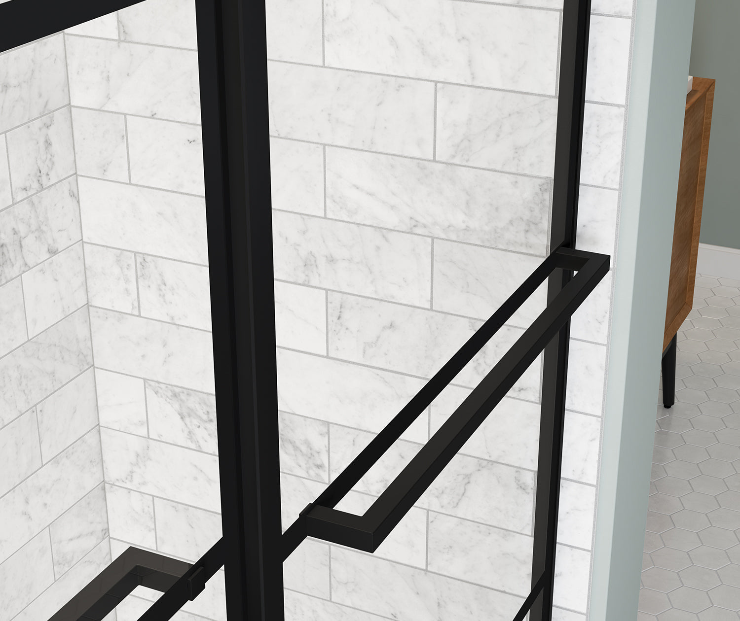 Incognito 57 Shaker 56-59 x 56 ¾ in. 8mm Bypass Tub Door for Alcove Installation with Shaker glass in Matte Black