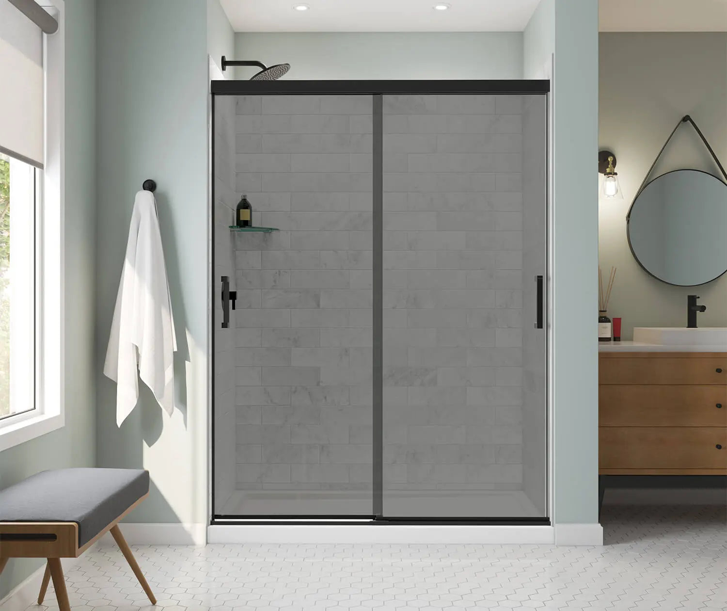 Incognito 76 Smoke 56-59 x 76 in. 8mm Bypass Shower Door for Alcove Installation with Light Smoke glass in Matte Black