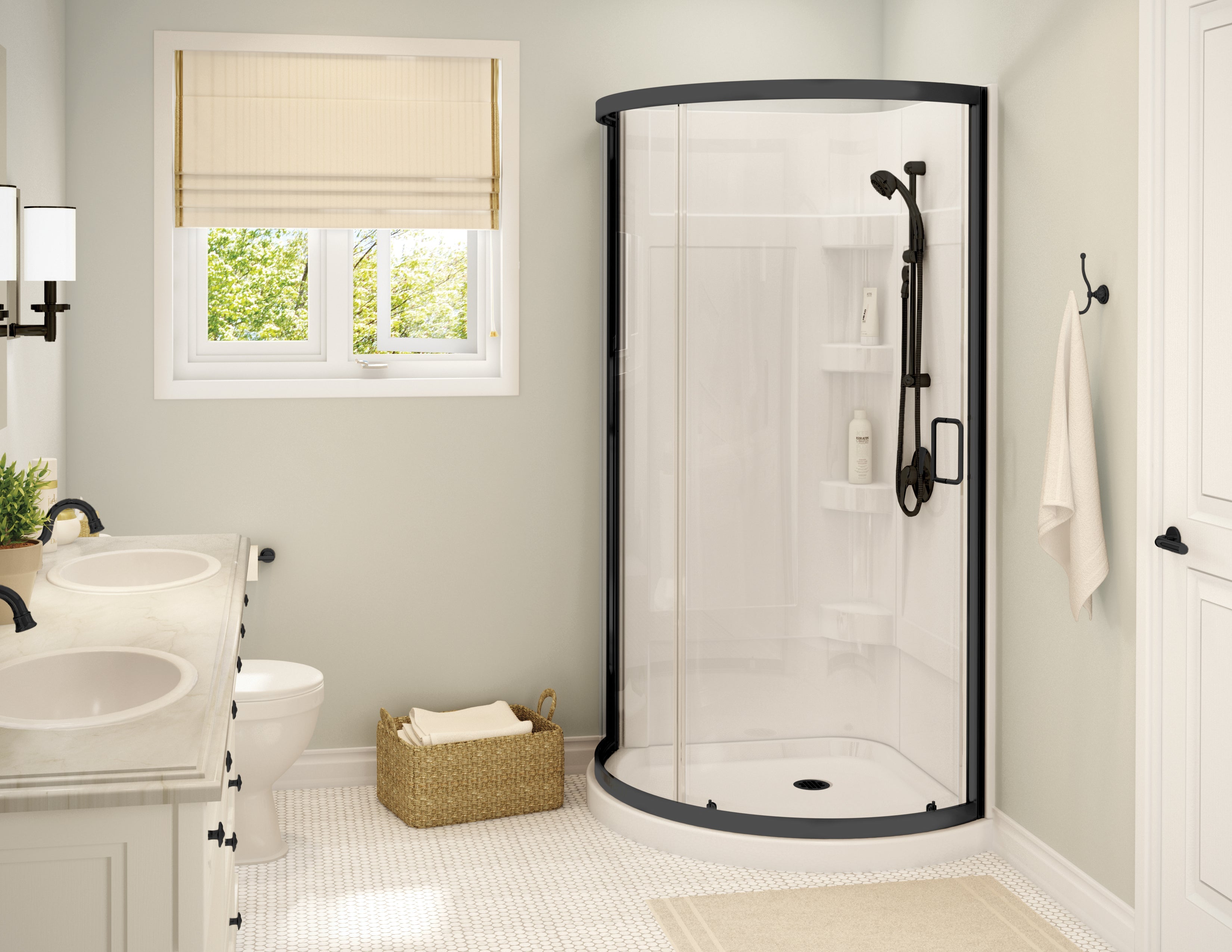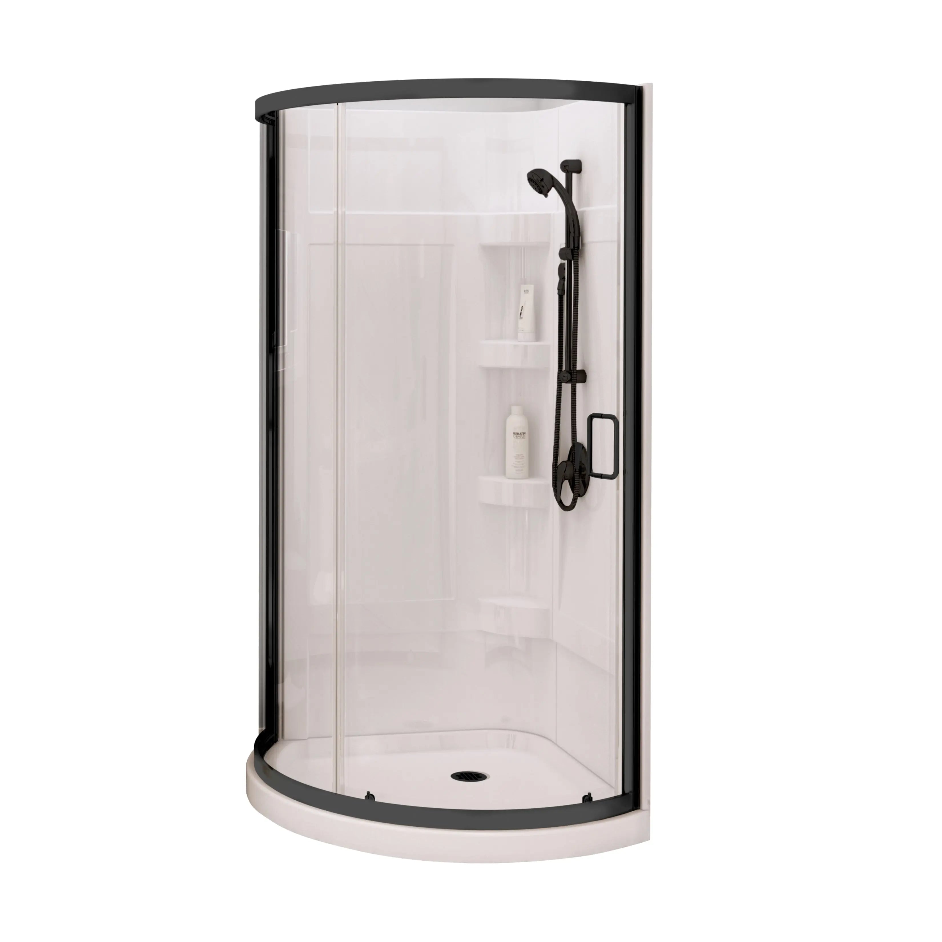 Maax Iris II 34 x 34 Acrylic Center Drain Shower Kit in White with Clear glass in Matte Black 300002-000-001-105