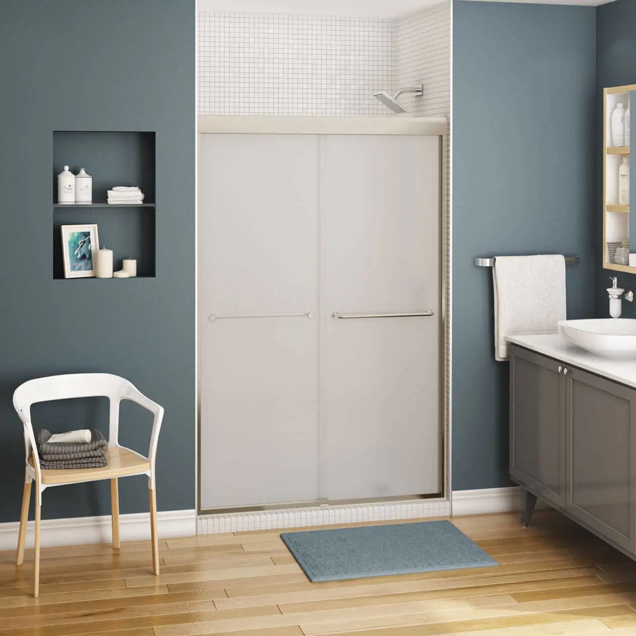Maax Kameleon 43-47 x 71 in. 6 mm Bypass Shower Door for Alcove Installation with Frosted glass in Brushed Nickel 134563-978-305-000