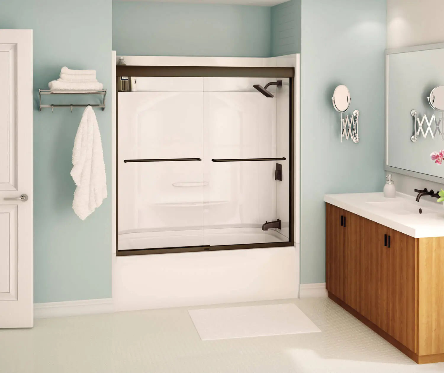 Kameleon 55-59 x 57 in. 6 mm Bypass Tub Door for Alcove Installation with Clear glass in Dark Bronze