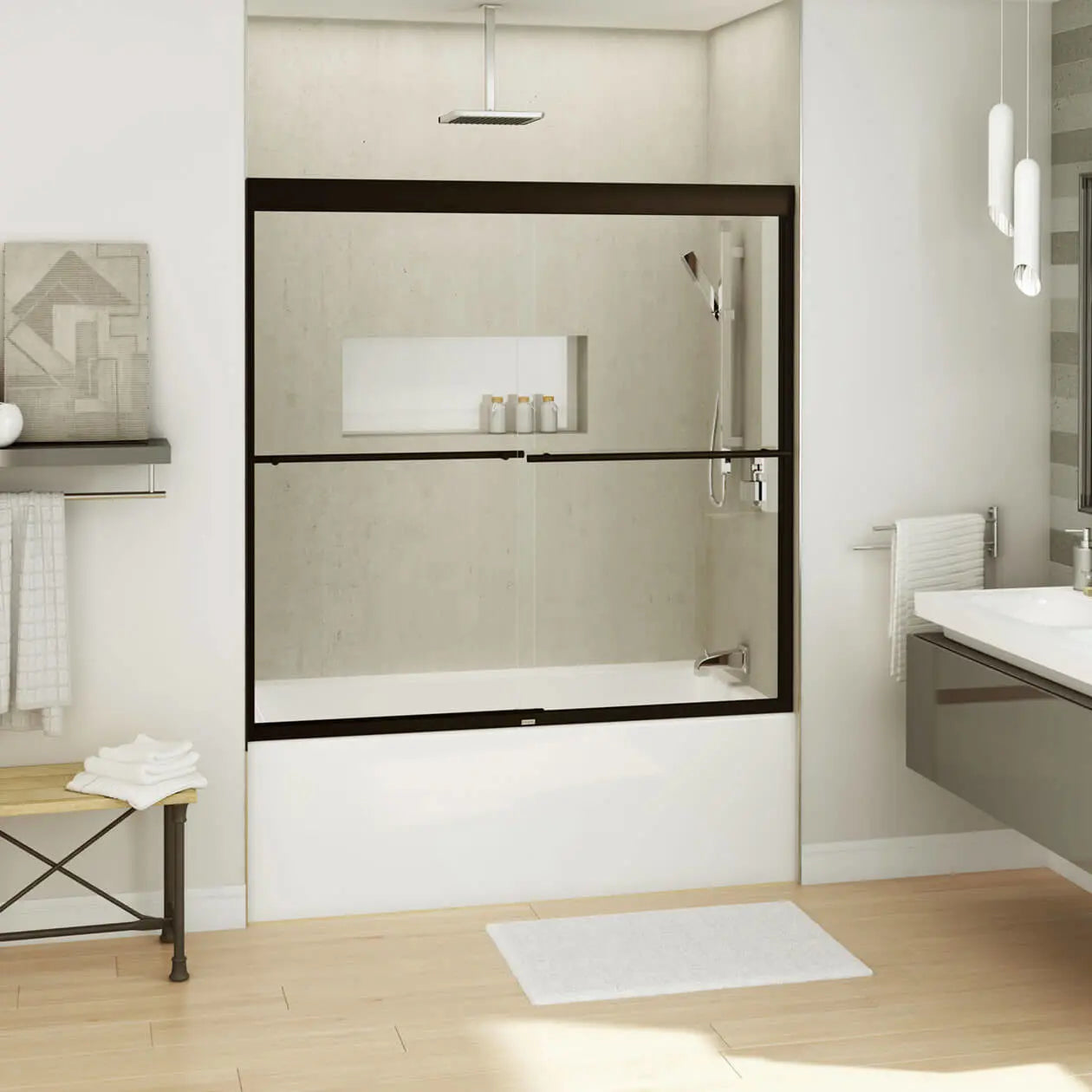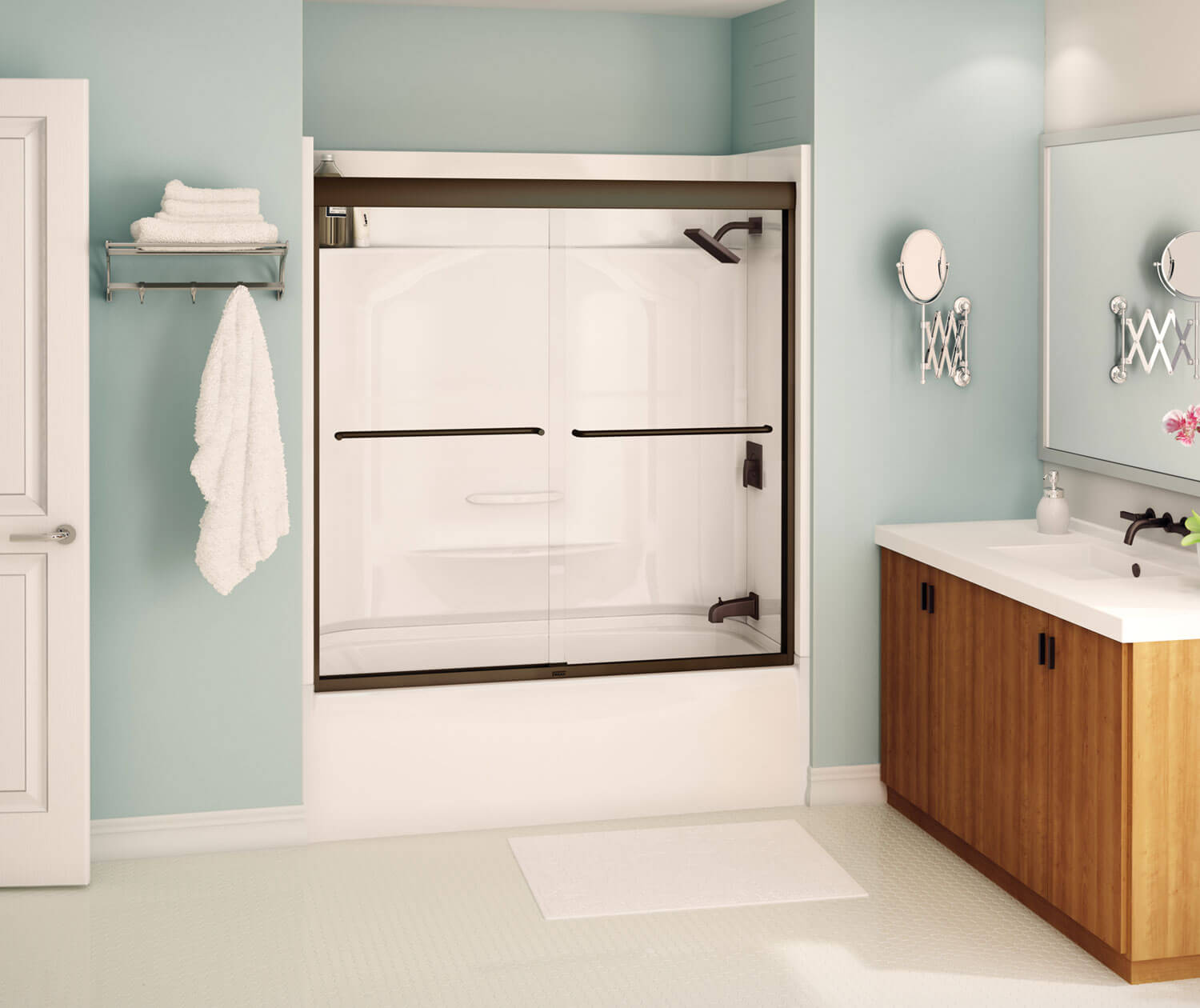Kameleon SC 55-59 x 57 in. 8 mm Bypass Tub Door for Alcove Installation with Clear glass in Dark Bronze