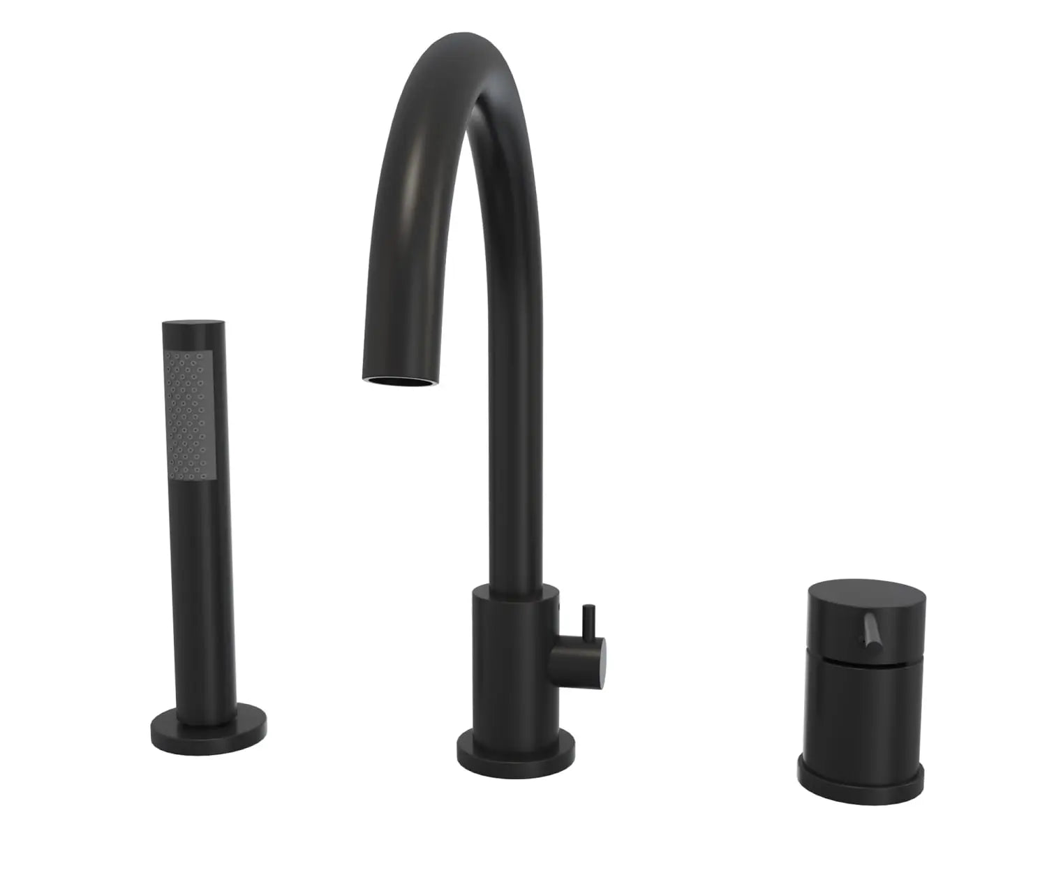 Keros Deckmounted Tub Faucet with Handshower in Matte Black