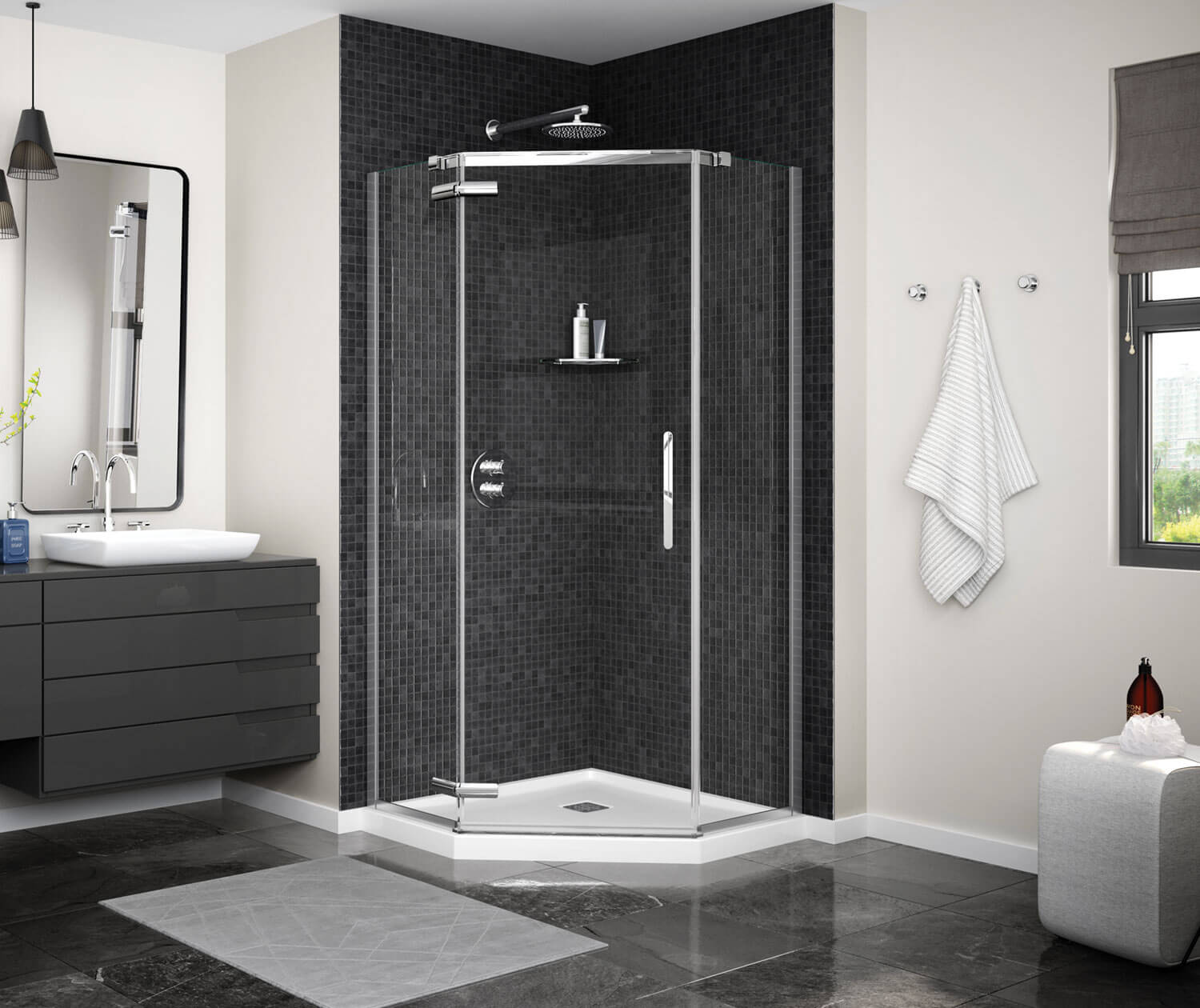 Link Curve Neo-angle 38 x 38 x 75 in. 8mm Pivot Shower Door for Corner Installation with Clear glass in Chrome