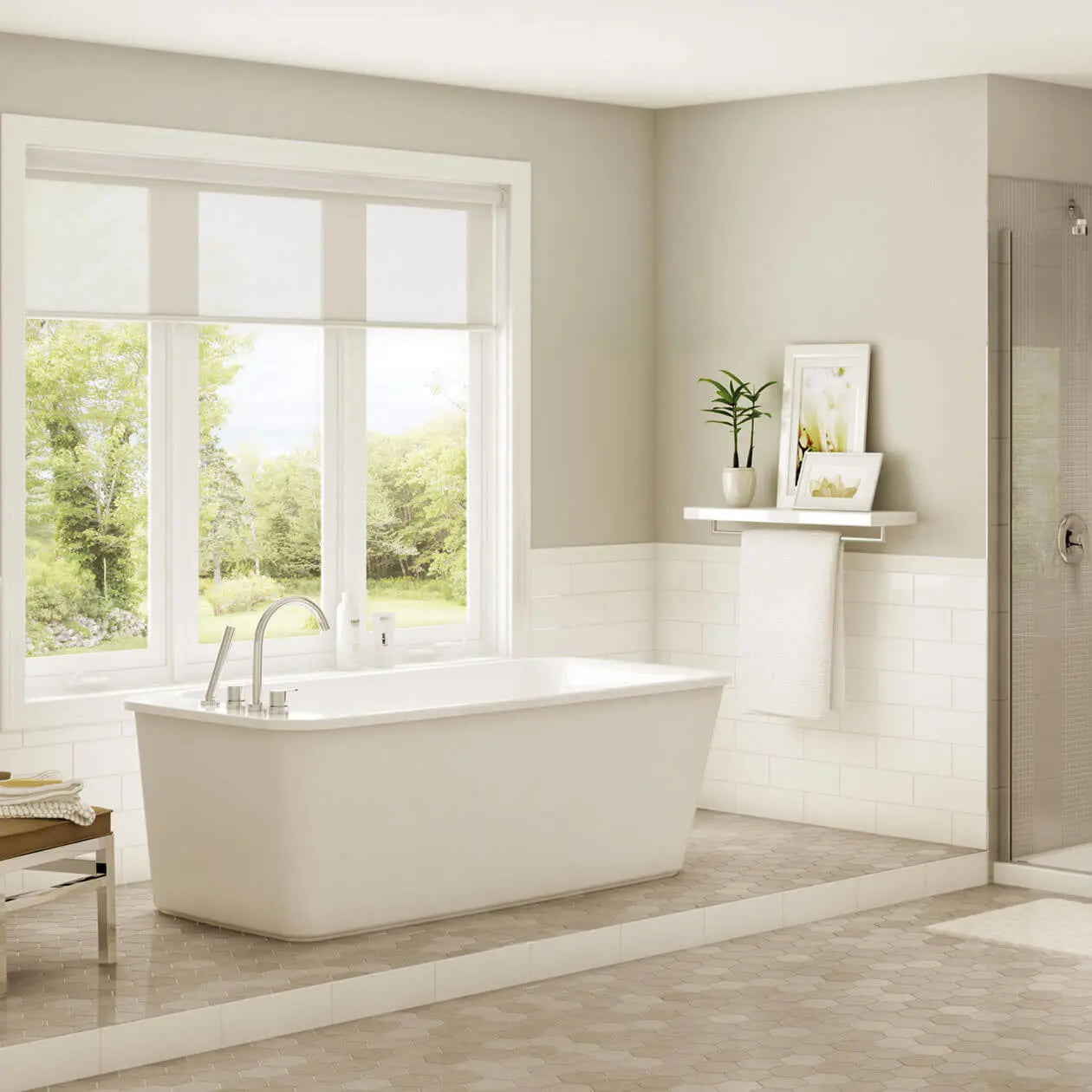 Lounge 6434 Acrylic Freestanding End Drain Bathtub in White with White Skirt