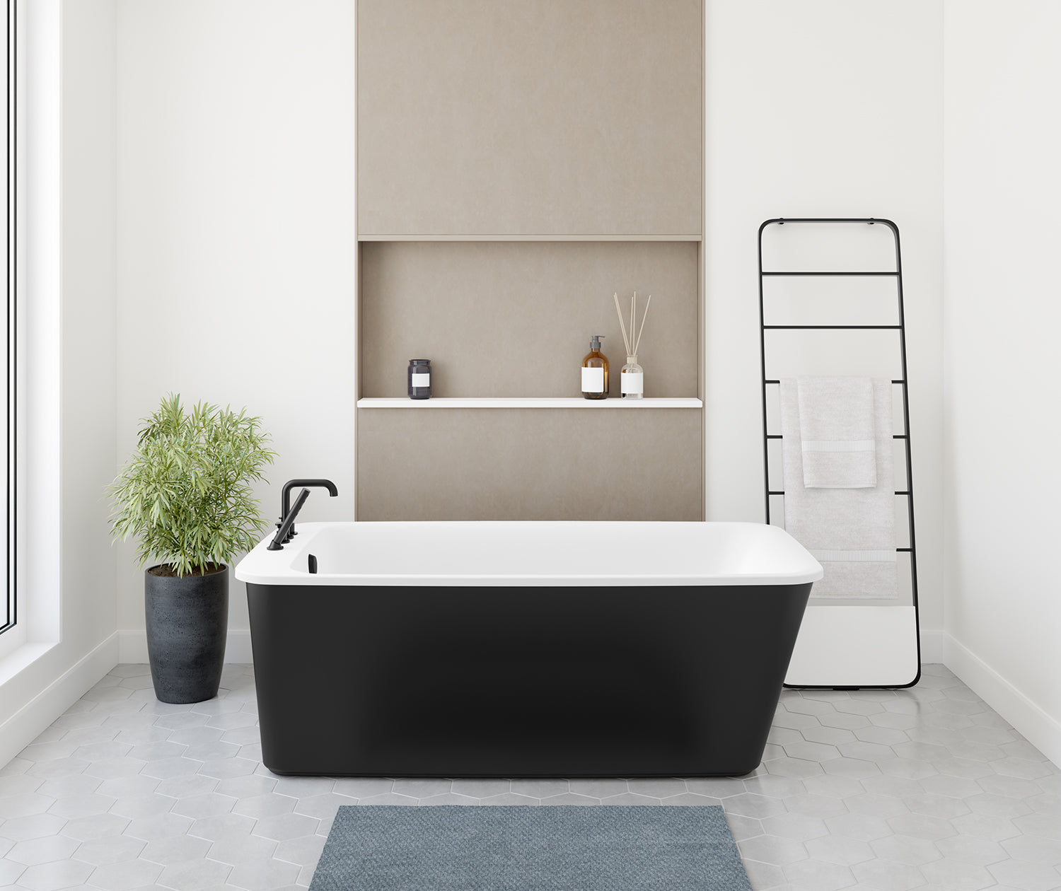 Lounge 6434 Acrylic Freestanding End Drain Bathtub in White with Black Skirt