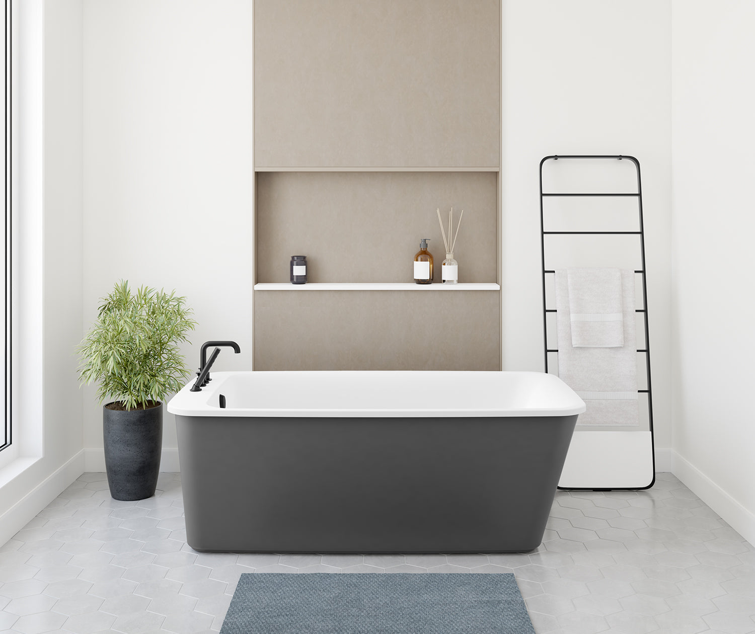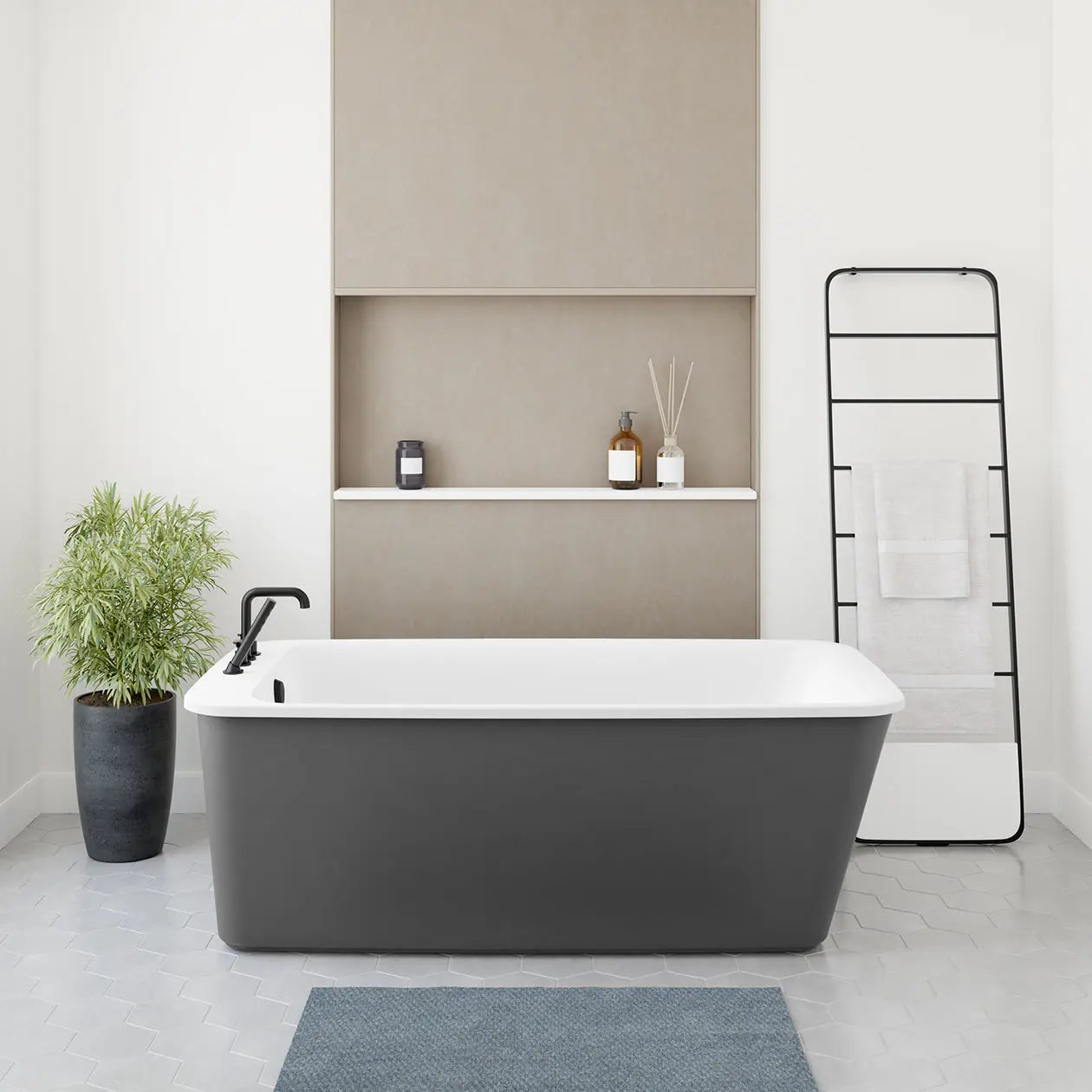 Lounge 6434 Acrylic Freestanding End Drain Bathtub in White with Thundey Grey Skirt